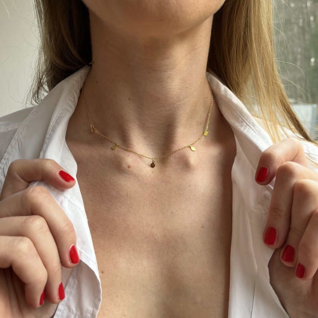 Wykonany ze srebra próby Ag925/1000 i ozdobiony złotymi złoceniami, naszyjnik ten wnosi odrobinę luksusu i wyrafinowania do codziennego stylu. Łańcuszek o długości 39 + 5 cm pozwala na idealne dopasowanie, a drobne medaliony o średnicy 3 mm dodają biżuterii subtelnego charakteru. Łańcuch jest również odporny na działanie czynników korozyjnych dzięki starannej obróbce powierzchni.