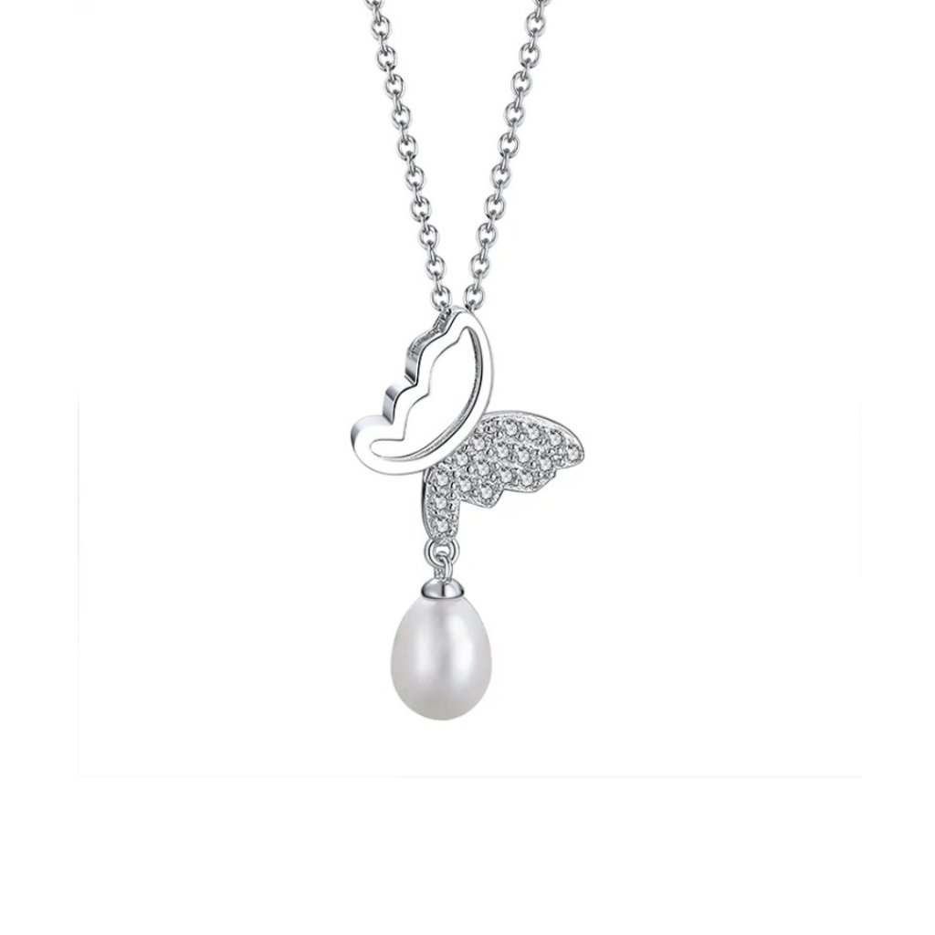 Wisiorek zachwyca asymetrycznym designem - jedno skrzydło lśni czystym srebrem, drugie mieni się drobnymi cyrkoniami. Pod zdobionym skrzydłem unosi się słodkowodna perła o długości 9 mm, która dodaje biżuterii delikatnego, romantycznego charakteru. Łańcuszek jest dostarczany w eleganckim pudełku prezentowym, co czyni go idealnym prezentem dla małych i dużych miłośniczek motyli. To idealny wybór dla tych, którzy szukają biżuterii łączącej dziecięcą zabawę z elegancją.