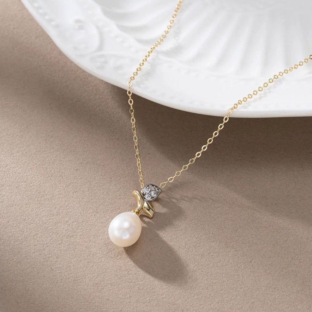 Oczaruj się pięknem pozłacanego łańcuszka z wisiorkiem DOROTHEA, który łączy w sobie elegancję natury z luksusem złota. Wykonany z wysokiej jakości srebra próby 925/1000 z 14-karatowym złoceniem dla doskonałego złotego blasku. Wisiorek o wymiarach 8 × 21 mm zdobią delikatne listki osadzone błyszczącymi cyrkoniami, z których spływa urocza słodkowodna perła o długości 11 mm.