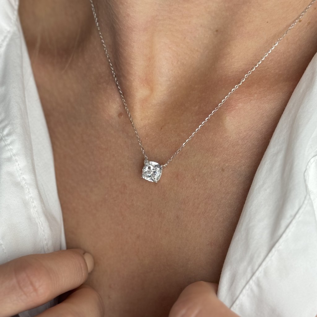 Srebrny łańcuszek z wisiorkiem AISHA wykonany jest z wysokiej jakości srebra o próbie Ag925/1000, a jego rodowane wykończenie zapewnia długotrwały połysk i ochronę przed zarysowaniami. Wisiorek zdobi delikatny cyrkon, który dzięki swojemu blaskowi natychmiast przyciąga uwagę.