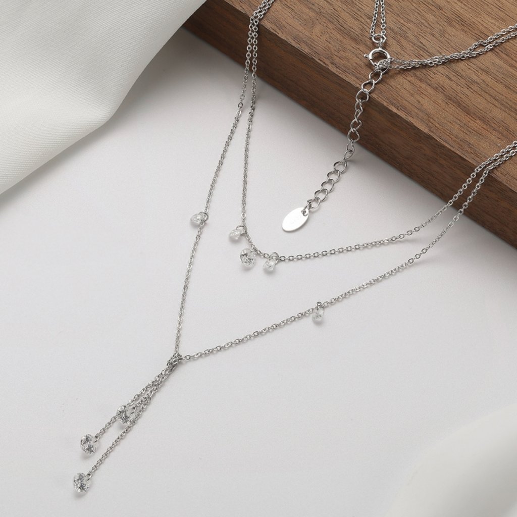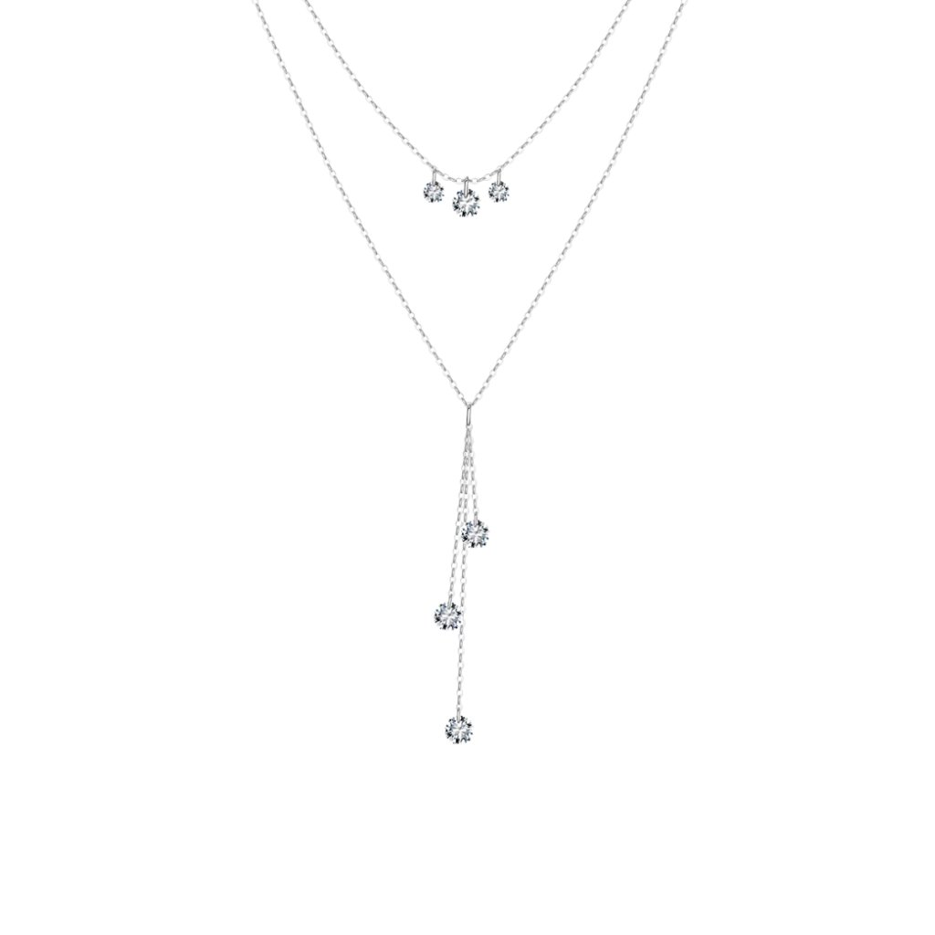 Uroczy podwójny srebrny naszyjnik MAIRA z błyszczącymi cyrkoniami tworzy delikatny, ale wyrazisty wygląd. Połączenie krótszego (35+4 cm) i dłuższego (40 cm) łańcuszka z przezroczystymi cyrkoniami o średnicy 3 mm dodaje eleganckiego, warstwowego efektu. Wykonany z rodowanego srebra 925. Ten unikalny naszyjnik nie pozostanie niezauważony i jest dostarczany w pudełku prezentowym.