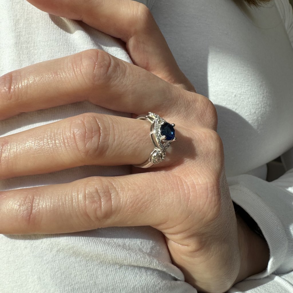 Wejdź do świata elegancji i wyrafinowania z naszym nowym, ponadczasowym srebrnym pierścionkiem z szafirem i cyrkoniami. Pierścionek jest doskonałym wyborem dla każdej nowoczesnej kobiety, wnosi odrobinę luksusu i wyrafinowania.