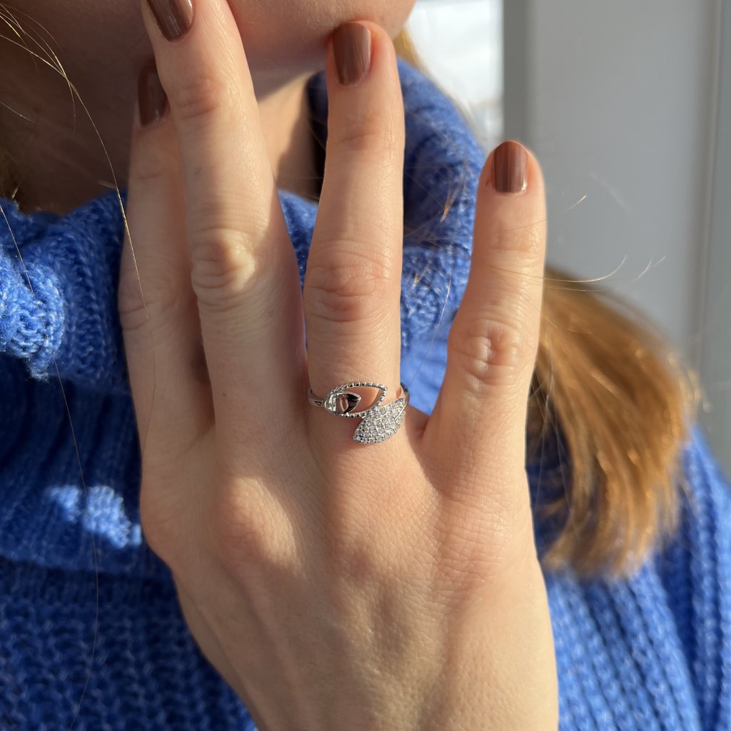 Zachwyć siebie lub podaruj komuś, kogo kochasz, wyjątkową biżuterię, która jest uosobieniem elegancji i kobiecości. Przedstawiamy nasz srebrny pierścionek z dwoma liśćmi cyrkonii, prawdziwe arcydzieło sztuki.