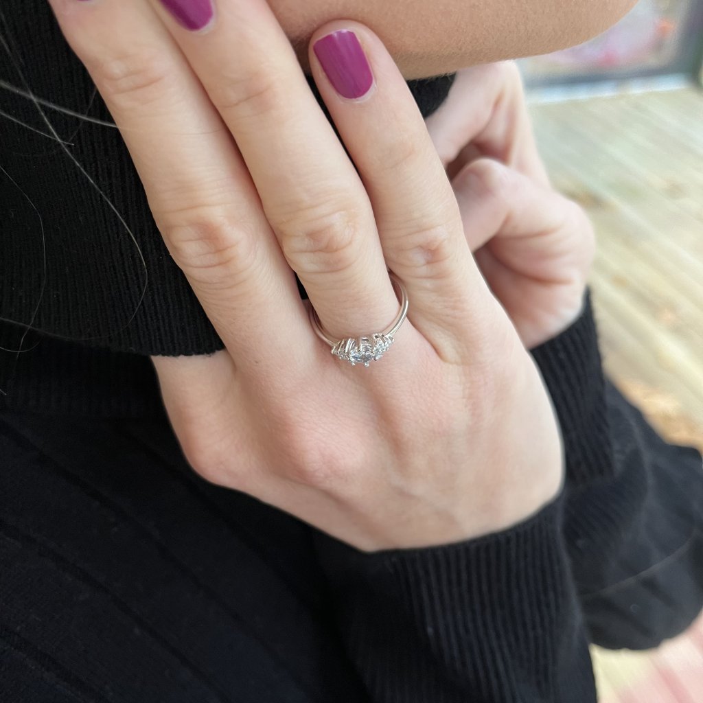 Ten pierścionek to świetny prezent dla każdej kobiety, która ceni sobie subtelne piękno i elegancję. Jest dostarczany w pudełku upominkowym.