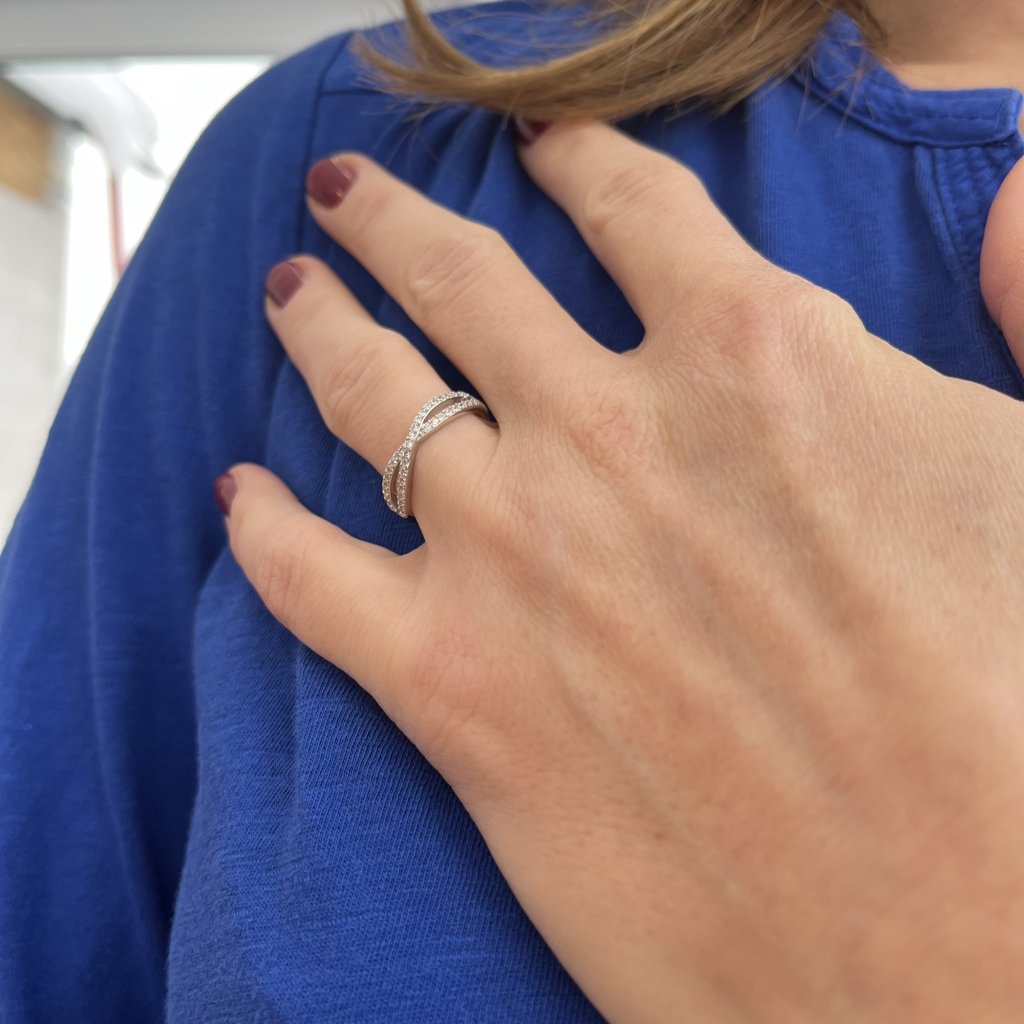 Z serca najczystszego srebra próby Ag925/1000 narodził się ten pierścionek, który jest czymś więcej niż tylko biżuterią. To obietnica wiecznej miłości, źródło radości i przypomnienie niezapomnianych chwil. Pocałowany przez słońce, błyszczy skrzyżowanym pierścieniem, który jest jak gwiazdy na nocnym niebie.