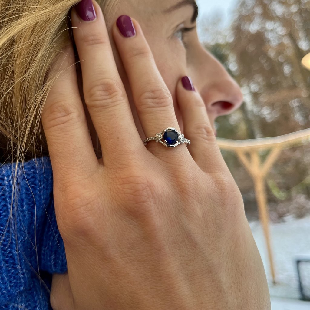 Pierścionek jest dostarczany w eleganckim pudełku prezentowym, które podkreśla jego luksusowy wygląd i zwiększa jego wartość. Daj się oczarować urokowi tego srebrnego pierścionka z niebieskimi cyrkoniami i przezroczystymi cyrkoniami sześciennymi i spraw, że Twoje zaręczyny będą niezapomniane.