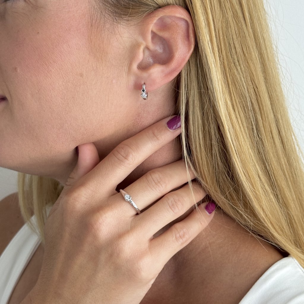 Ten wyjątkowy element wykonany jest ze srebra o próbie Ag925/1000, co gwarantuje jego wysoką jakość i długą żywotność. Rodowane wykończenie dodaje pierścionkowi połysku, który podkreśla jego luksusowy charakter.