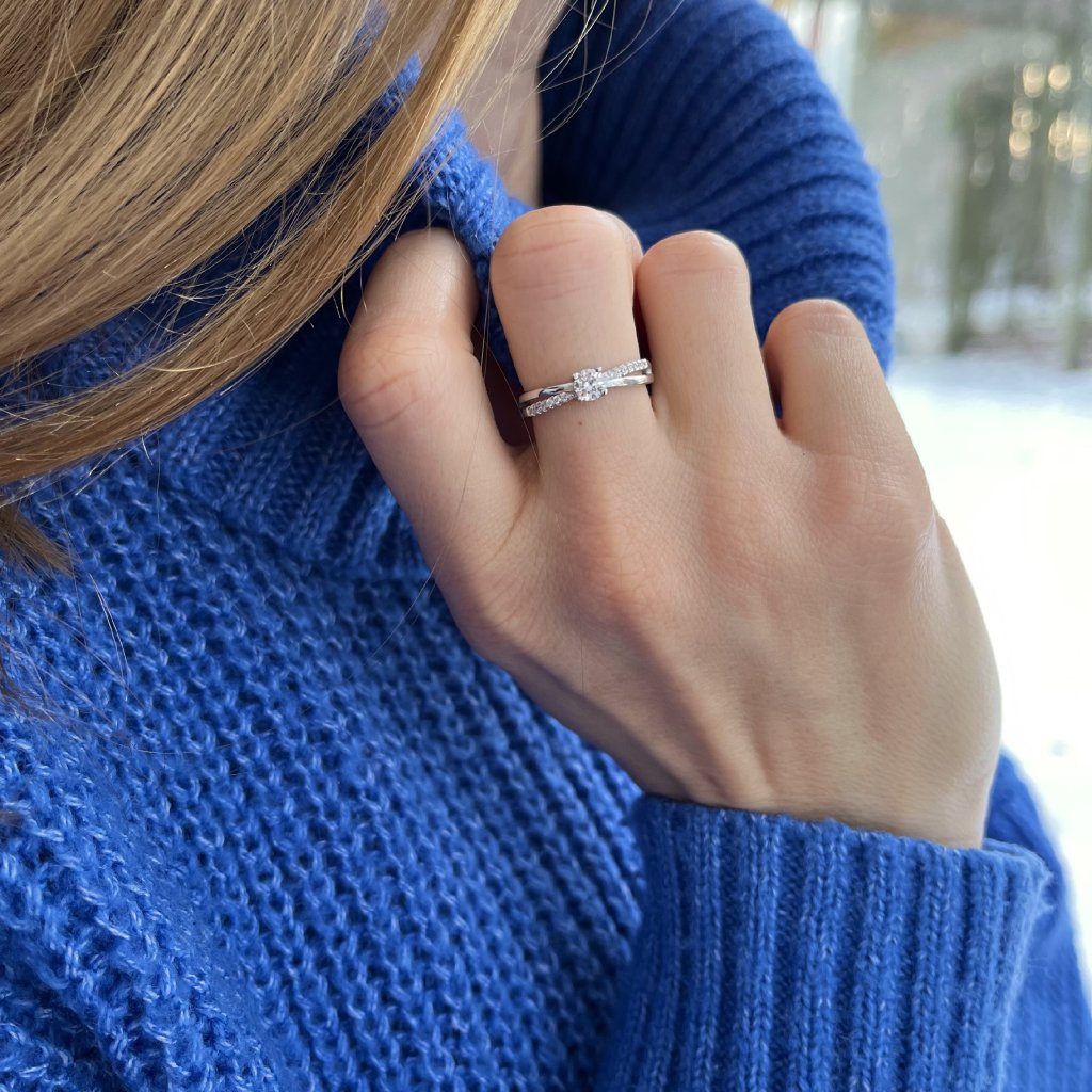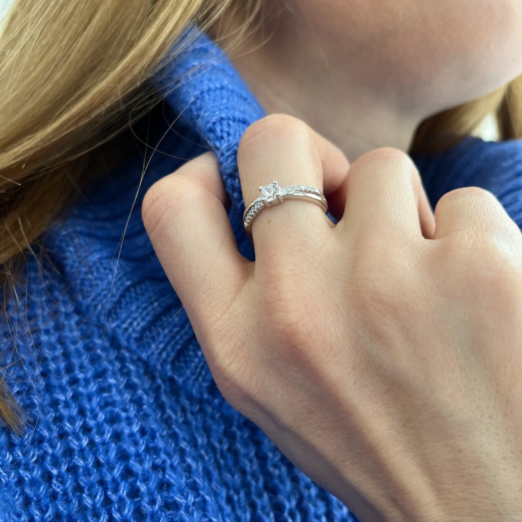 Ten wysokiej jakości pierścionek ma srebrny i przezroczysty kolor, który pięknie komponuje się z każdym odcieniem skóry i dodaje blasku każdemu strojowi.