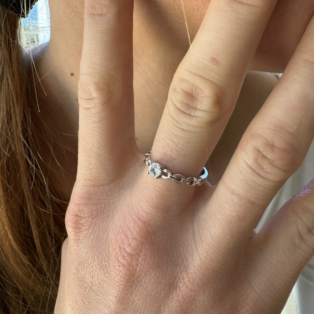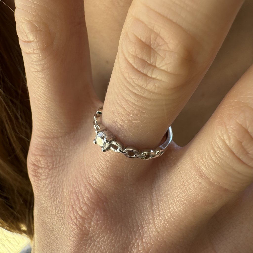 Ta elegancka biżuteria, wykonana z wysokiej jakości srebra próby 925, ozdobiona jest błyszczącą cyrkonią sześcienną o średnicy 4 mm, która zajmuje centralne miejsce. Powierzchnia pierścionka jest pokryta rodem, co zapewnia jej trwały połysk i ochronę przed zarysowaniami.
