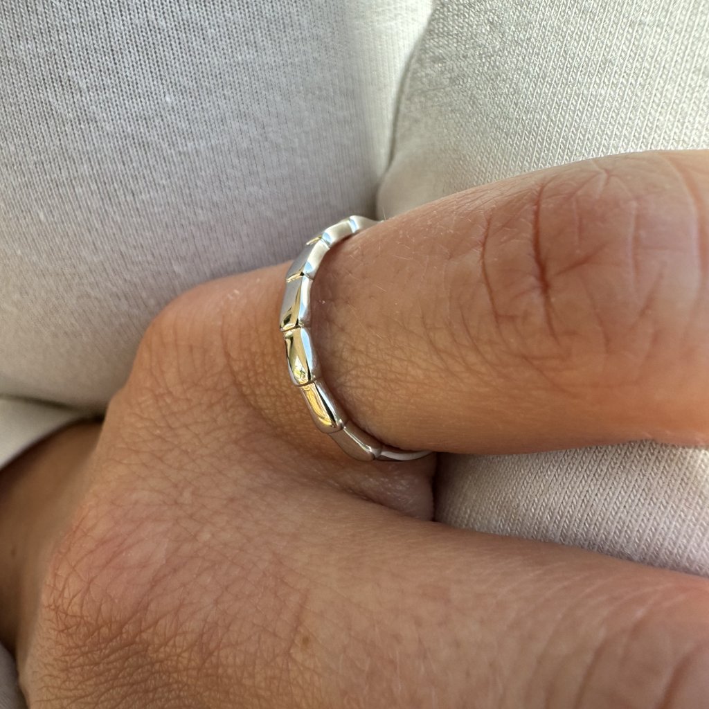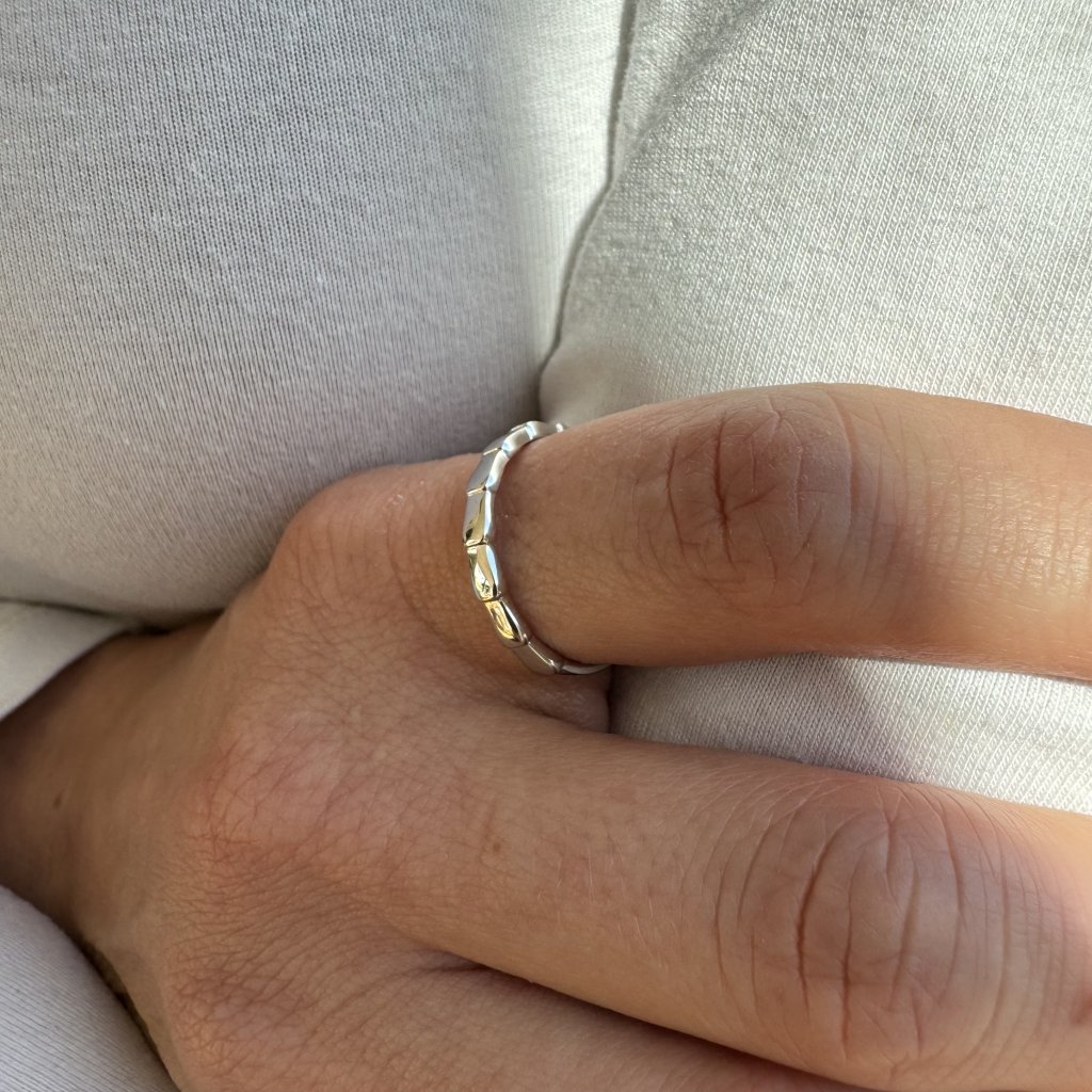 Ten pierścionek jest wyjątkowy dzięki czystemu i prostemu wzornictwu, które zostało wykonane z wysokiej jakości srebra próby 925. Jego prostota sprawia, że jest tak wyjątkowy i elegancki.