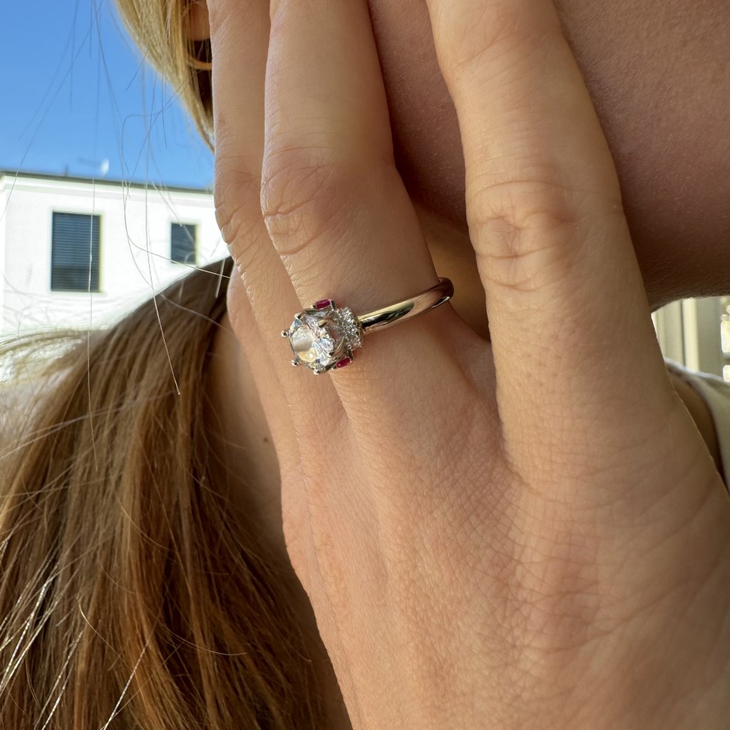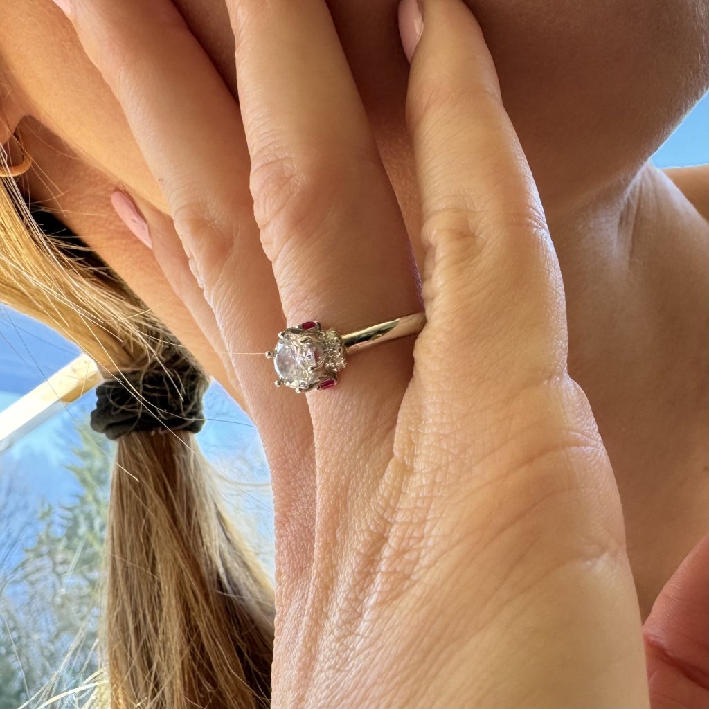 Pierścionek wykonany jest z wysokiej jakości srebra próby 925, co gwarantuje jego trwałość i wytrzymałość. Jpokryty rodem, co oznacza, że jest odporny na zarysowania i pozostaje błyszczący przez lata. Jest idealny jako pierścionek zaręczynowy i z pewnością zrobi wrażenie na każdej kobiecie.