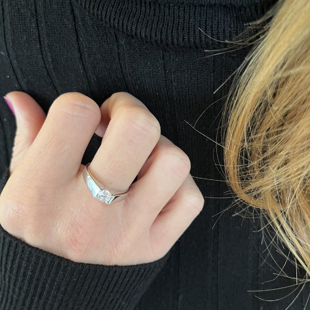 Ten wyrafinowany pierścionek został wykonany z wysokiej jakości srebra próby 925 i jest ozdobiony kwadratową cyrkonią sześcienną, która wyróżnia się na środku pierścionka. Ten pierścionek zaręczynowy lub ślubny jest również doskonałym wyborem na każdą okazję - rocznicę, urodziny lub po prostu dla zabawy.