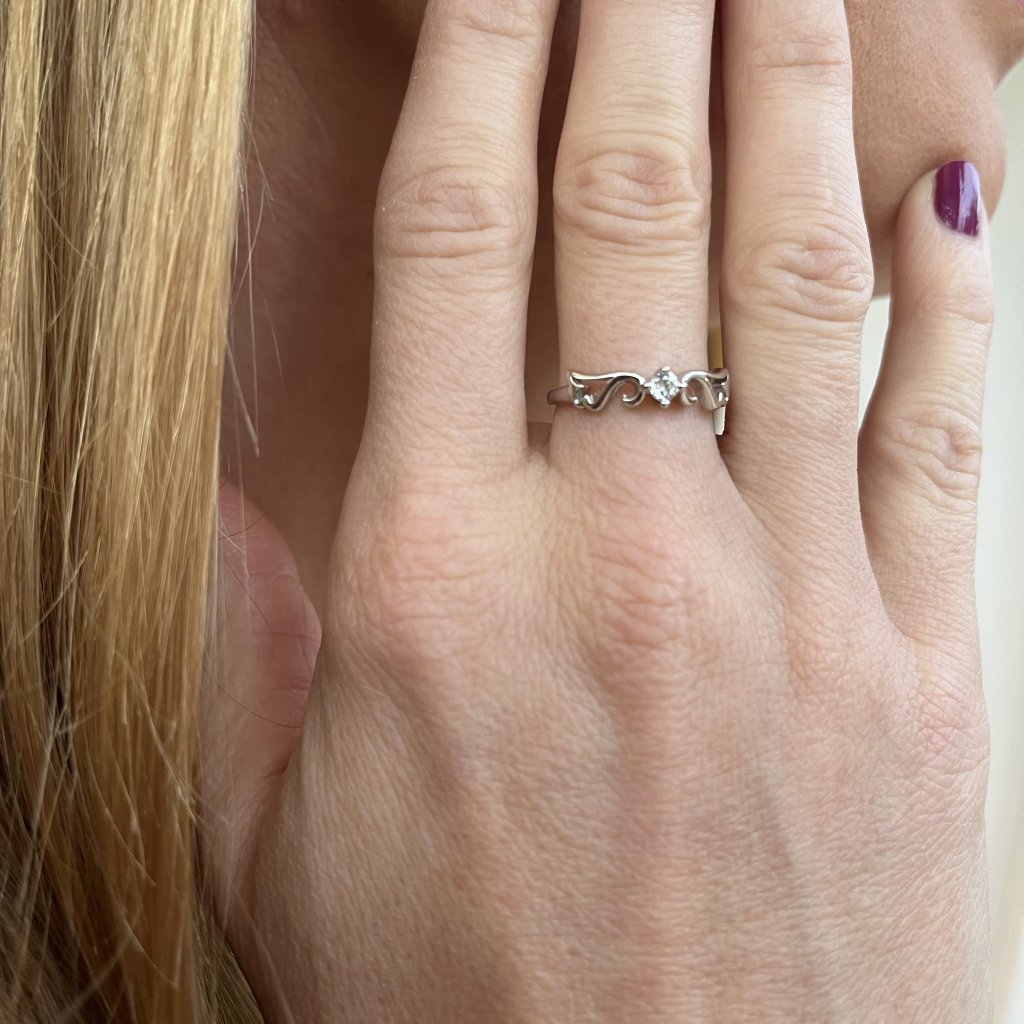 Pierścionek jest bardzo wygodny w noszeniu, dzięki możliwości regulacji rozmiaru od 7 do 9 (EU: 54 - 61). Kolor pierścionka jest srebrny i przezroczysty, co idealnie pasuje do wszystkich rodzajów strojów. W połączeniu z pierścieniem 10364 - ANGELA.