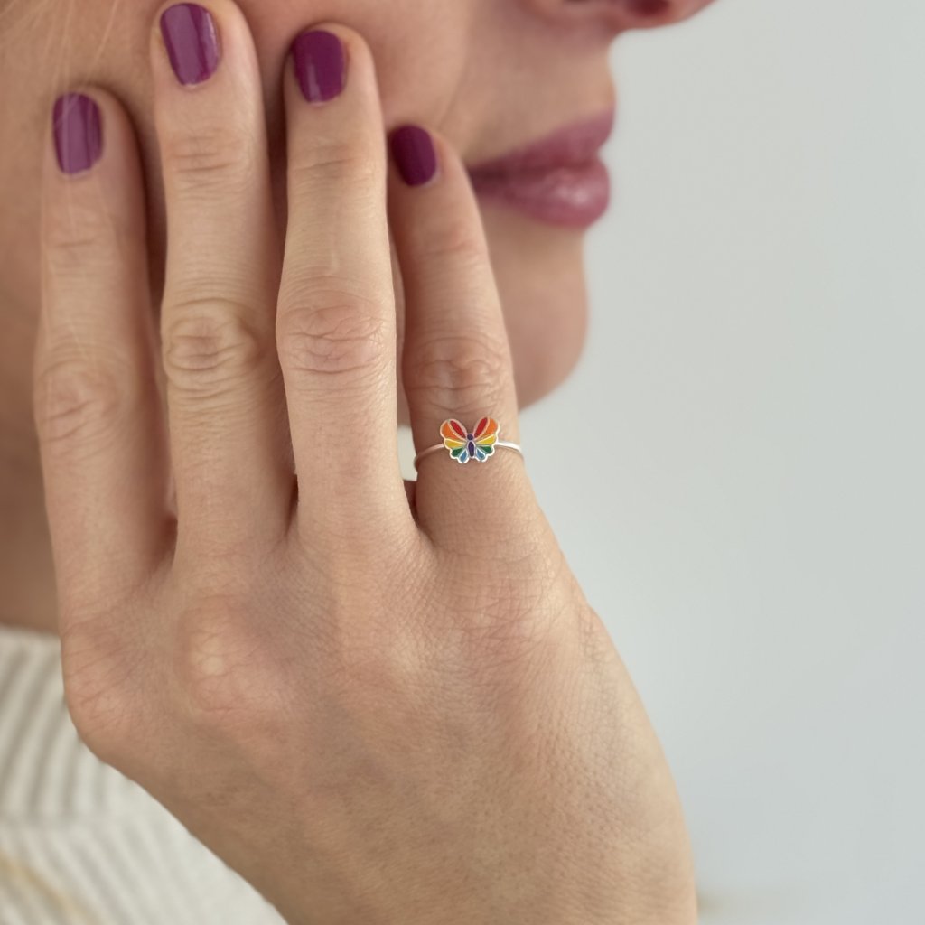 Przedstawiamy uroczy srebrny pierścionek na stopę z kolorowym motylkiem, który został wykonany z wysokiej jakości srebra o próbie Ag925/1000. Srebrny pierścionek został poddany obróbce antykorozyjnej, co gwarantuje długą żywotność klejnotu. Pierścionek jest przeznaczony dla kobiet, ale dzięki swojej wszechstronności i średnicy pierścionka 15 mm jest odpowiedni dla każdej kobiety lub dziewczyny.