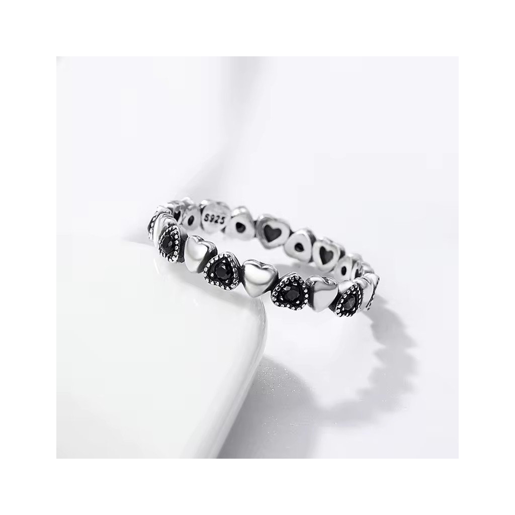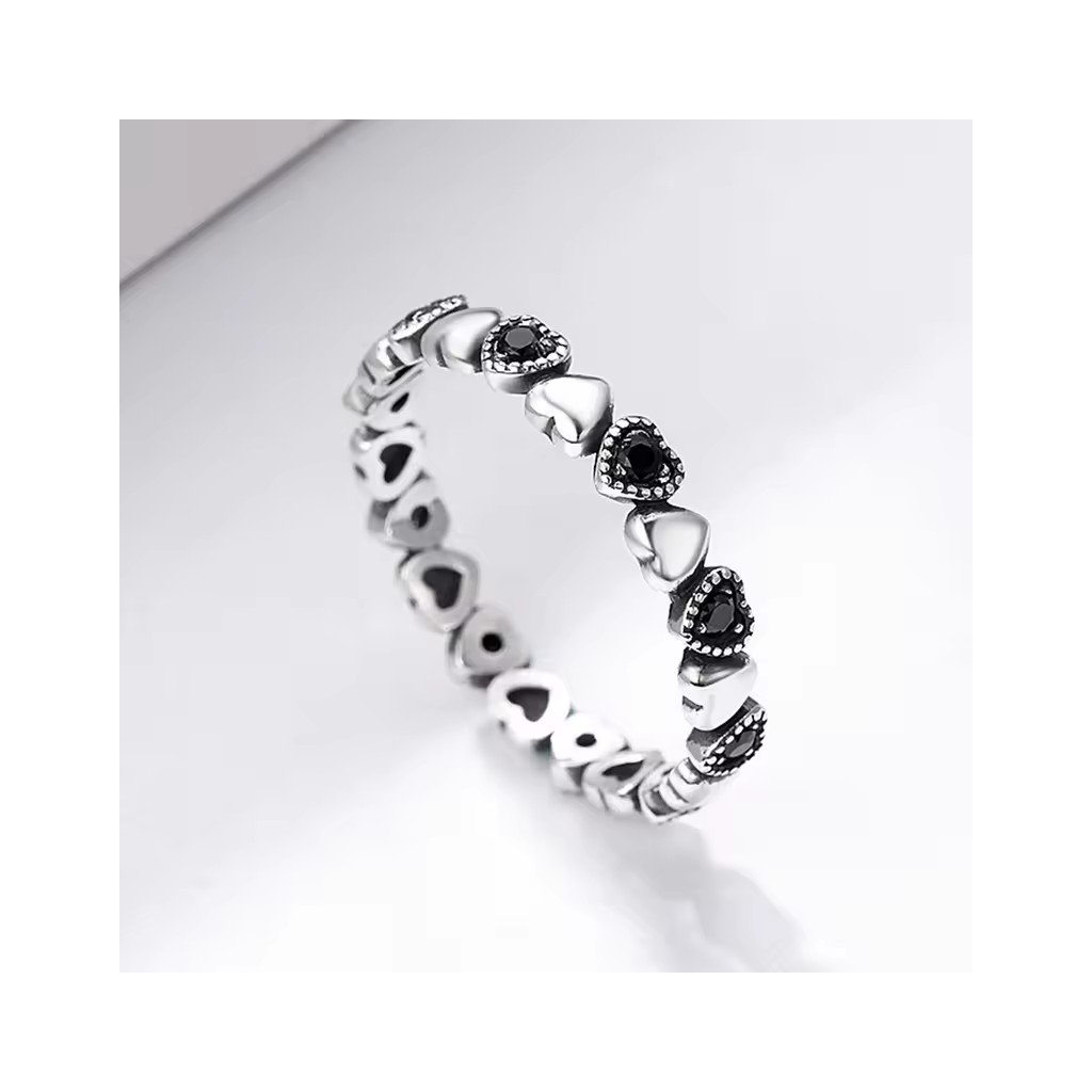 Ta wyjątkowa biżuteria wykonana z rodowanego srebra Ag925 zachwyca oryginalnym wzorem składającym się z połączonych ze sobą serc. Każde inne serce jest albo w czystym srebrze, albo z błyszczącą czarną sześcienną cyrkonią, tworząc efektowny kontrast.