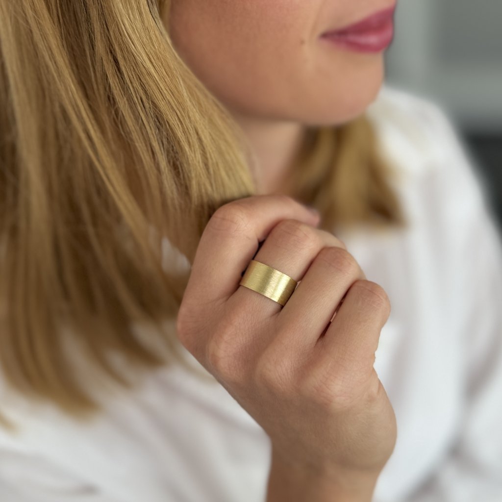Pierścionek FIONA M w wersji pozłacanej jest idealny jako elegancki dodatek do codziennego noszenia i na specjalne okazje. Aby uzyskać wyrazisty styl, można połączyć go z innymi pierścionkami FIONA o różnych szerokościach i wykończeniach.