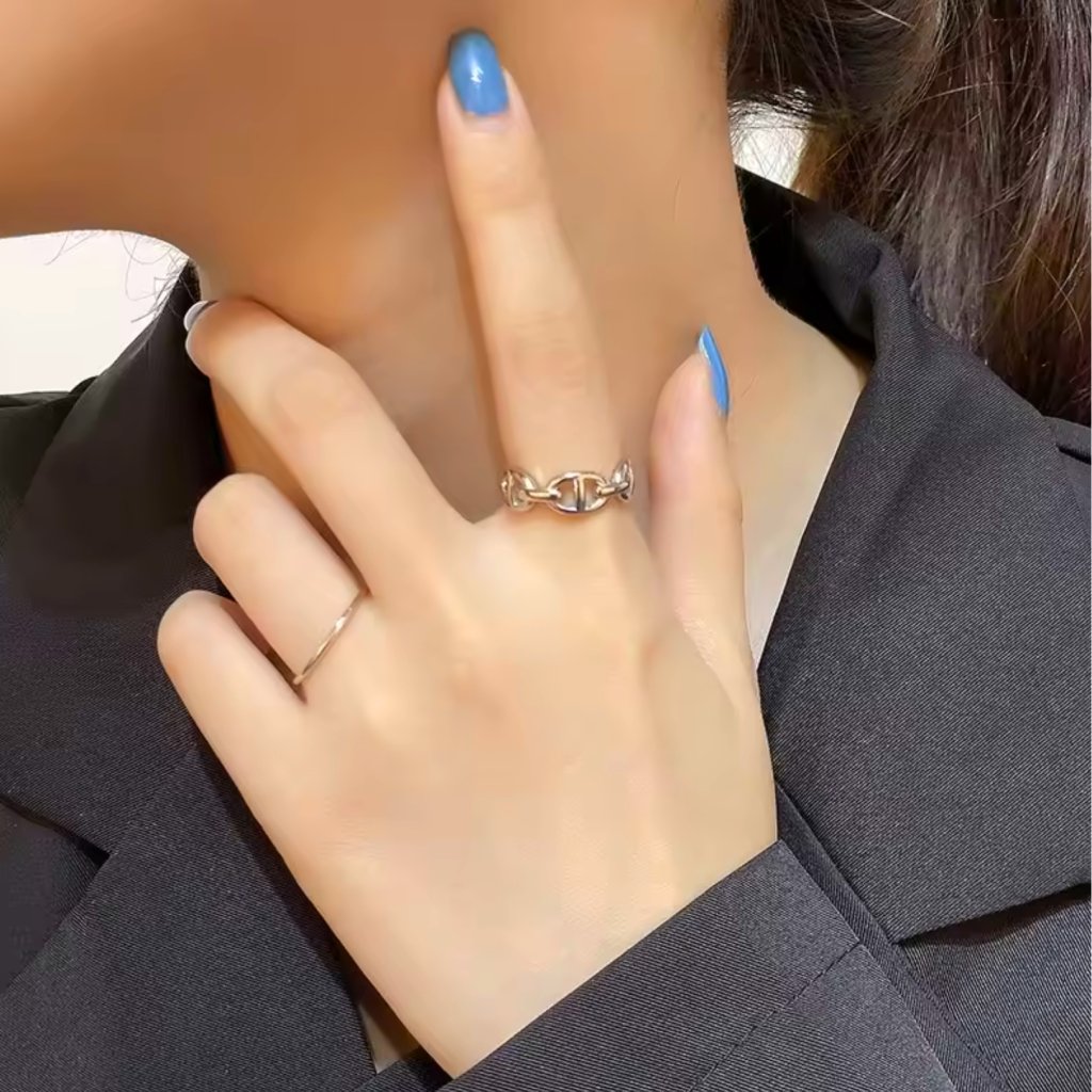 Pierścionek zapakowany jest w piękne pudełko upominkowe, dzięki czemu jest idealnym wyborem na prezent dla najbliższych. Zachwyć siebie lub swoich bliskich tą ponadczasową biżuterią o niezwykłym łańcuszkowym designie.