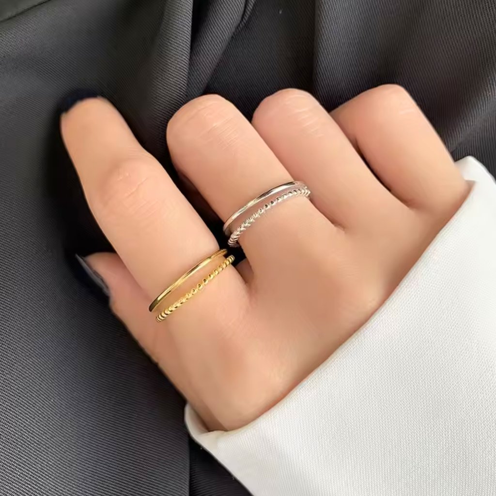 Minimalistyczny pozłacany pierścionek CARINA zachwyca delikatnym dwurzędowym wzorem. Dzięki regulowanemu rozmiarowi od 6 do 7, idealnie pasuje na palec zarówno mężczyzn, jak i kobiet. Pierścionek wykonany jest z wysokiej jakości srebra próby 925/1000, a jego powierzchnia pokryta jest prawdziwym 14-karatowym złotem, które nadaje mu luksusowy wygląd, wysoki połysk i chroni go przed zużyciem.