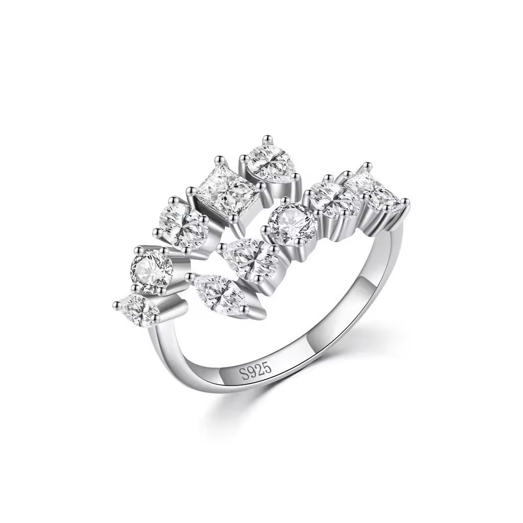 Przód pierścionka jest bogato wysadzany większymi cyrkoniami sześciennymi, które tworzą oszałamiający efekt iskrzenia. Dzięki szerokości 10 mm pierścionek jest wyrazisty, ale nadal nadaje się do codziennego noszenia. Regulowany rozmiar od 6 do 8 (UE: 51-58) zapewnia idealne dopasowanie do niemal każdej kobiety.