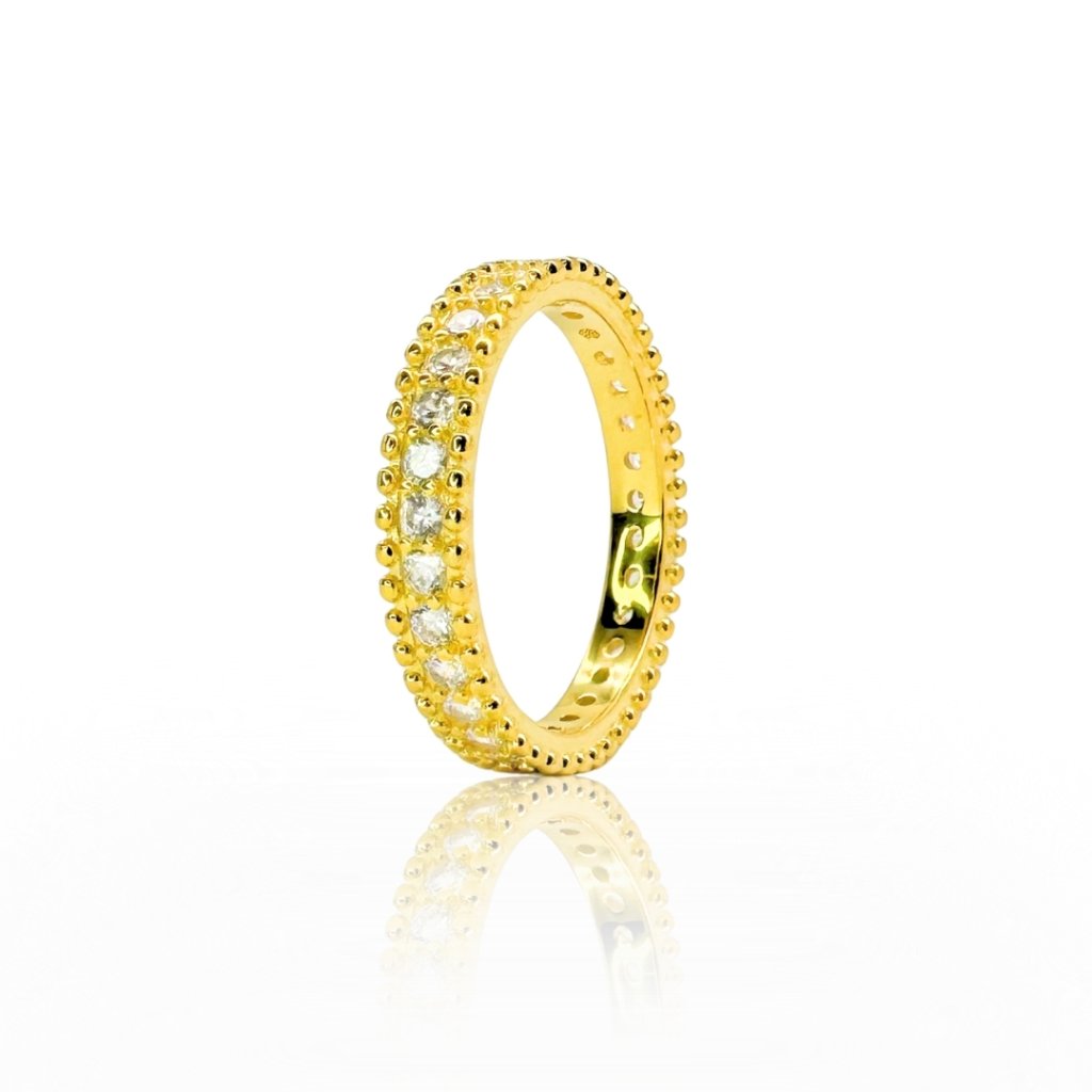 Cała powierzchnia pierścionka jest bogato wysadzana błyszczącymi cyrkoniami sześciennymi, które tworzą ciągłe pasmo mieniącego się światła. Szerokość 4 mm sprawia, że pierścionek JASMINA jest eleganckim i wyróżniającym się dodatkiem, który pasuje do każdego stroju, zarówno codziennego, jak i odświętnego.