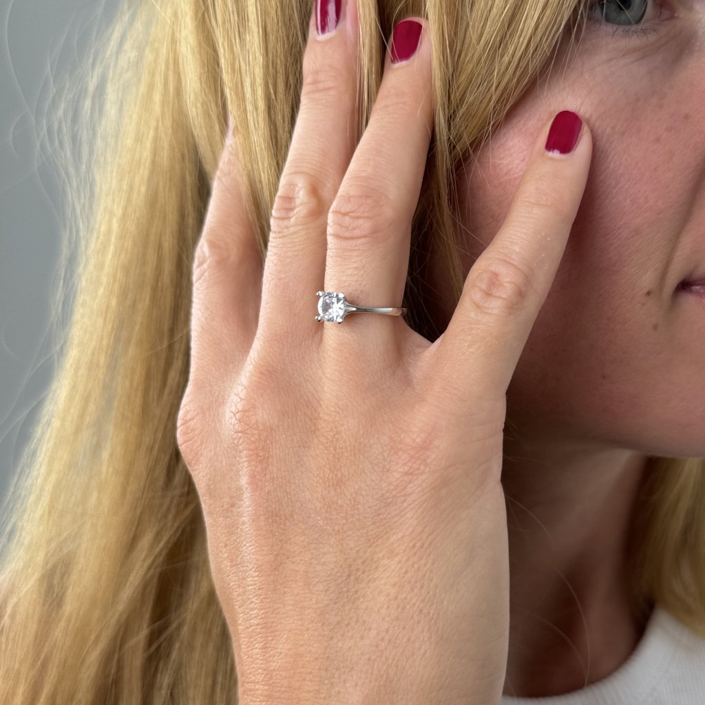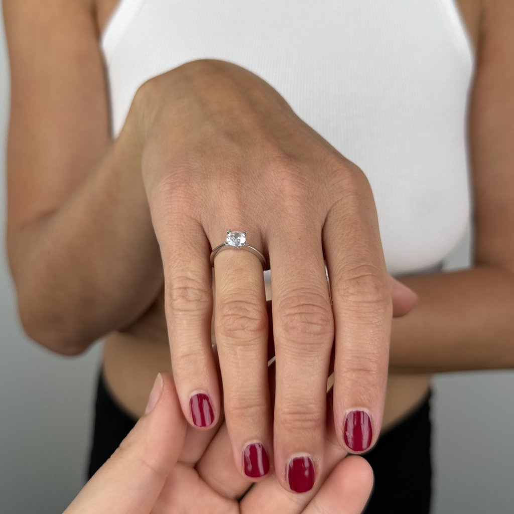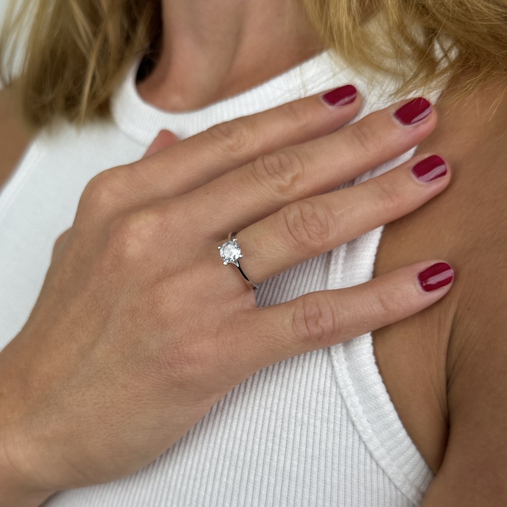 Pierścionek jest zdominowany przez błyszczącą cyrkonię, która pięknie odbija światło i symbolizuje czystość i trwałość miłości. Szerokość pierścionka wynosząca 6 mm zapewnia wystarczająco dużo miejsca, aby kamień się wyróżniał, zapewniając jednocześnie wygodne noszenie na co dzień.