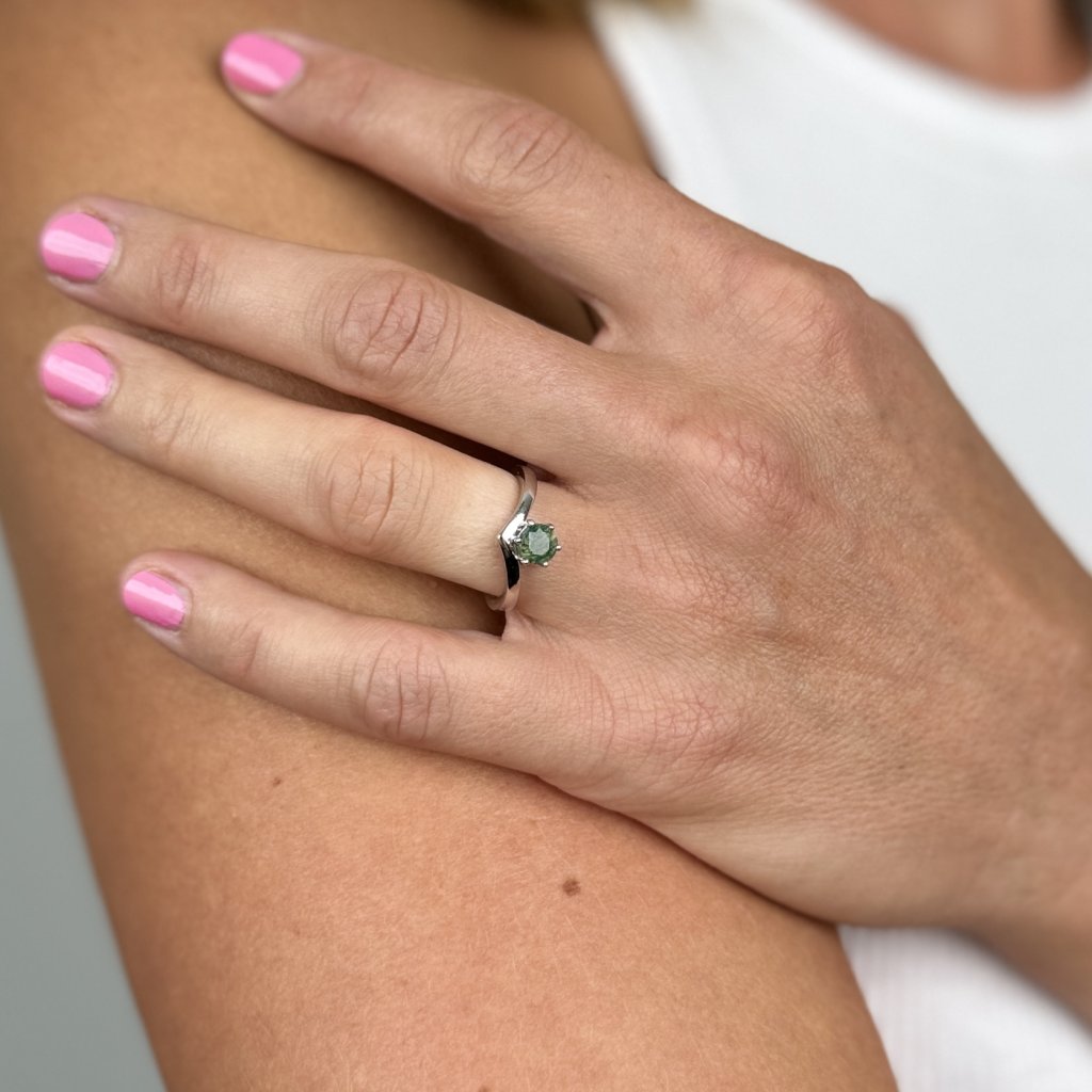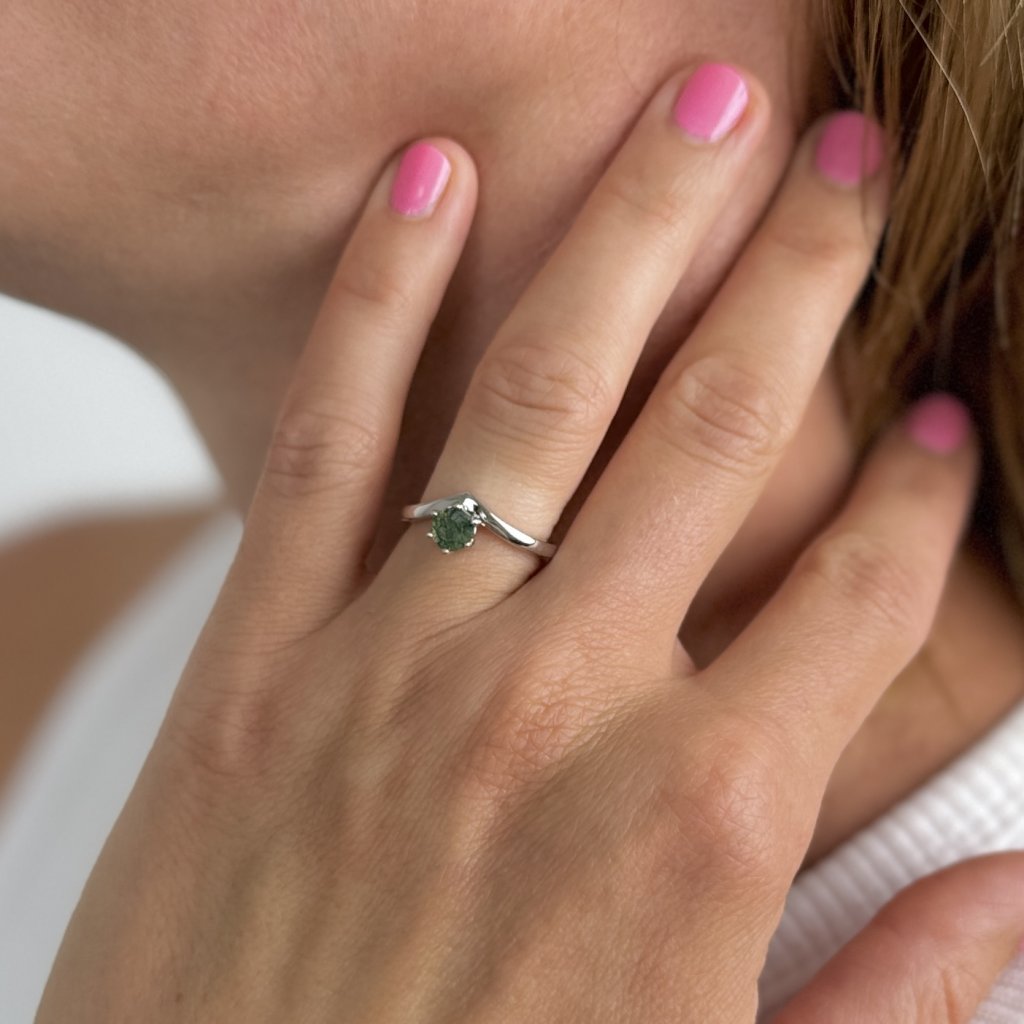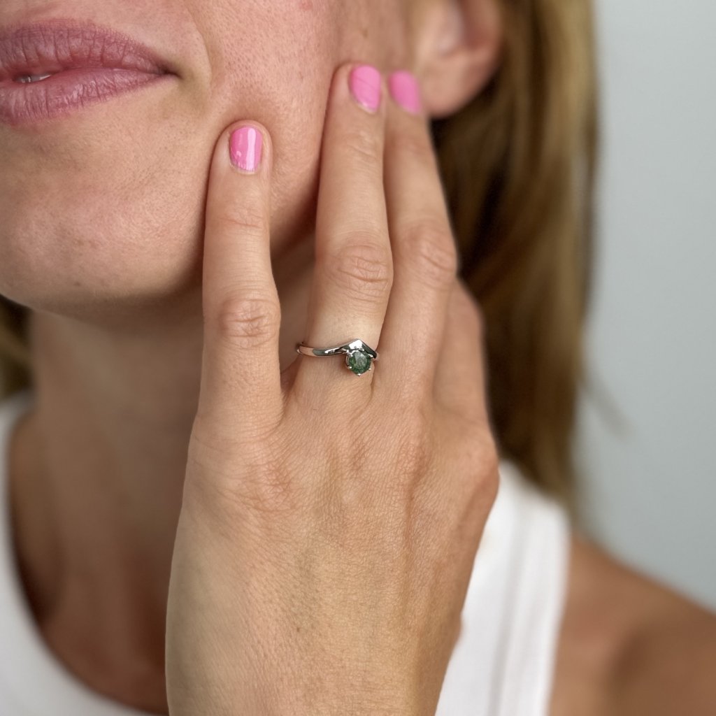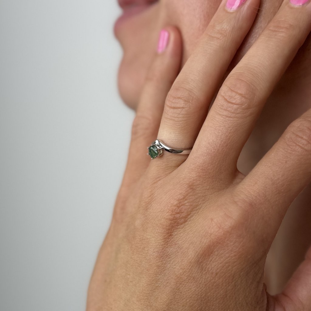 Wykonany z wysokiej jakości srebra próby 925 z rodowanym wykończeniem zapewniającym długotrwały połysk i ochronę. Sercem pierścionka jest piękny 5 mm agat mszysty, znany ze swoich uspokajających właściwości i zdolności do promowania wytrzymałości. Symbolizuje stabilność i wierność swoim życiowym celom.