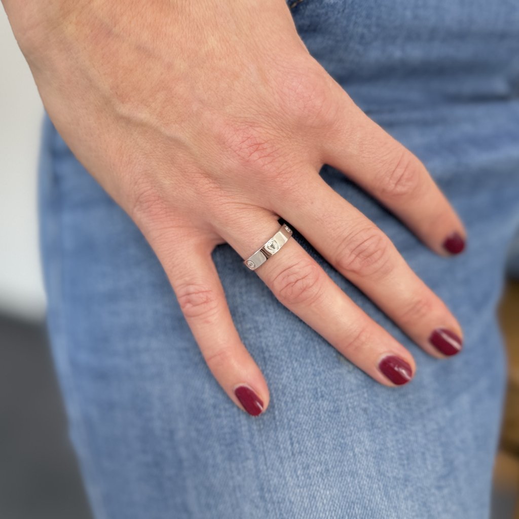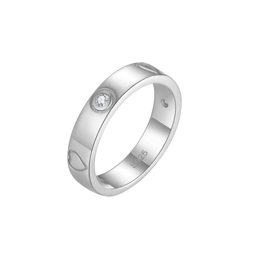 Szerokość 4 mm sprawia, że pierścionek jest idealny do noszenia na co dzień. Wysokiej jakości srebro próby 925/1000 i precyzyjne wykonanie gwarantują, że pierścionek będzie jak nowy przez długi czas. Przezroczyste cyrkonie sześcienne o średnicy 2 mm nadają pierścionkowi lśniący wygląd w każdym oświetleniu.