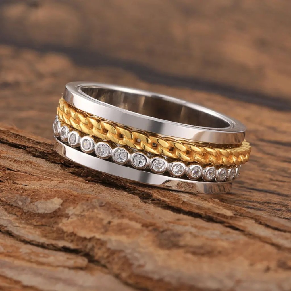 Ta wielofunkcyjna biżuteria to idealny wybór dla kobiet i mężczyzn, którzy docenią nie tylko jej walory estetyczne, ale także uspokajający efekt podczas obracania elementów. Pierścionek jest dostarczany w eleganckim pudełku prezentowym, co czyni go idealnym prezentem na każdą okazję.