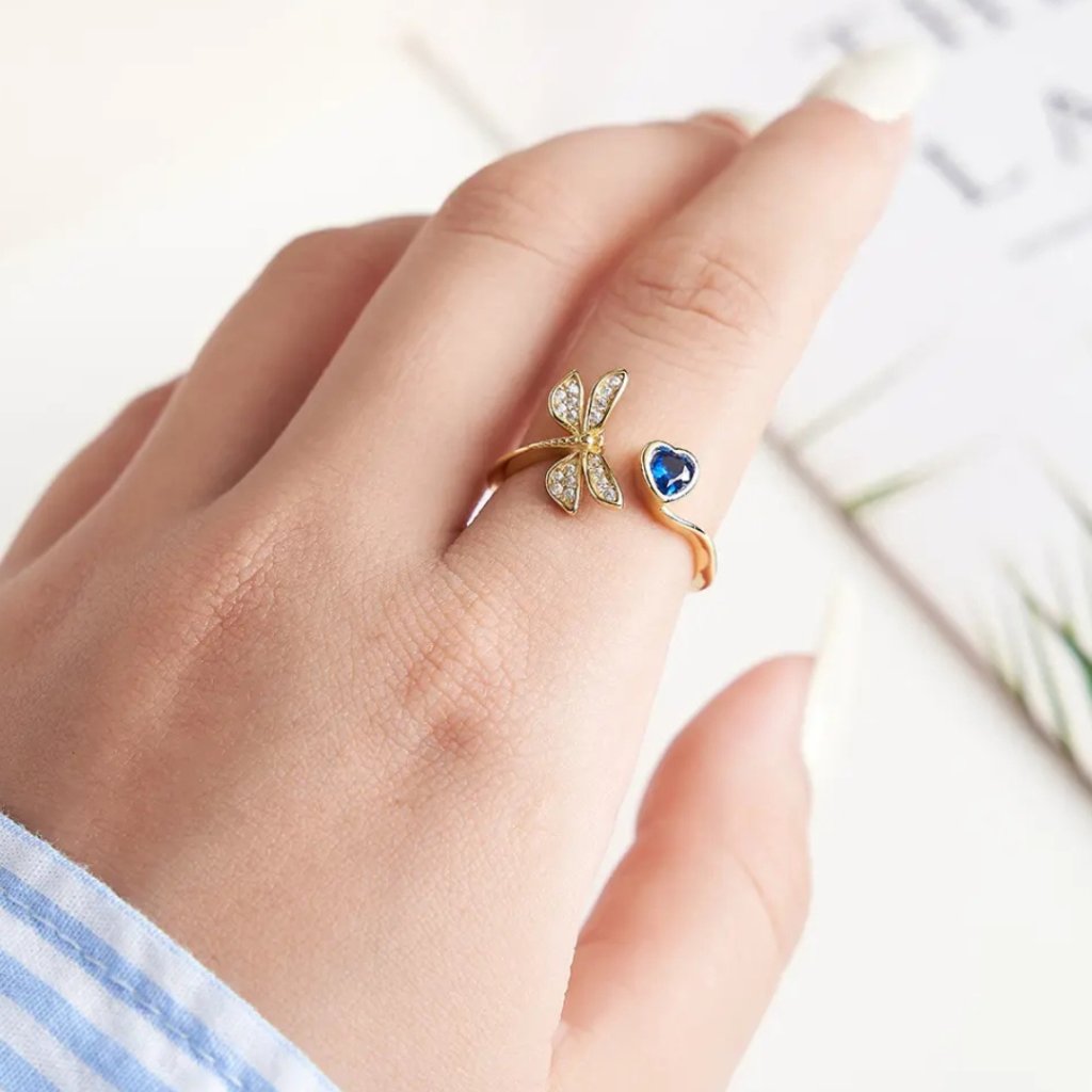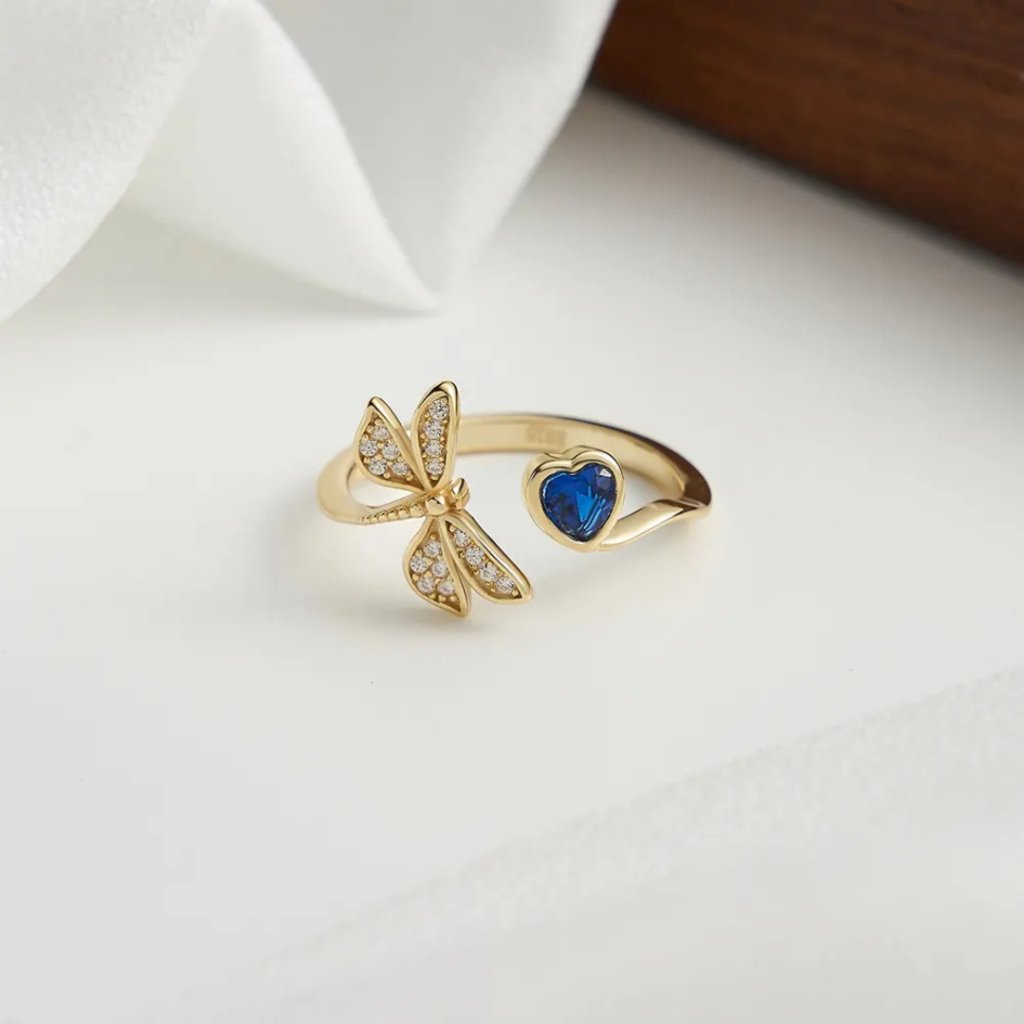 Przedstawiamy Państwu uroczy, regulowany pierścionek ZAFIRA, który łączy elegancję z symbolicznym znaczeniem. Na jednym końcu pierścionek zdobi wdzięczny ważka, symbol transformacji i mądrości, na drugim końcu zaś serce z błyszczącym niebieskim cyrkonem. Pozłacanie 14-karatowym złotem dodaje biżuterii luksusowego wyglądu i zwiększa jej trwałość.