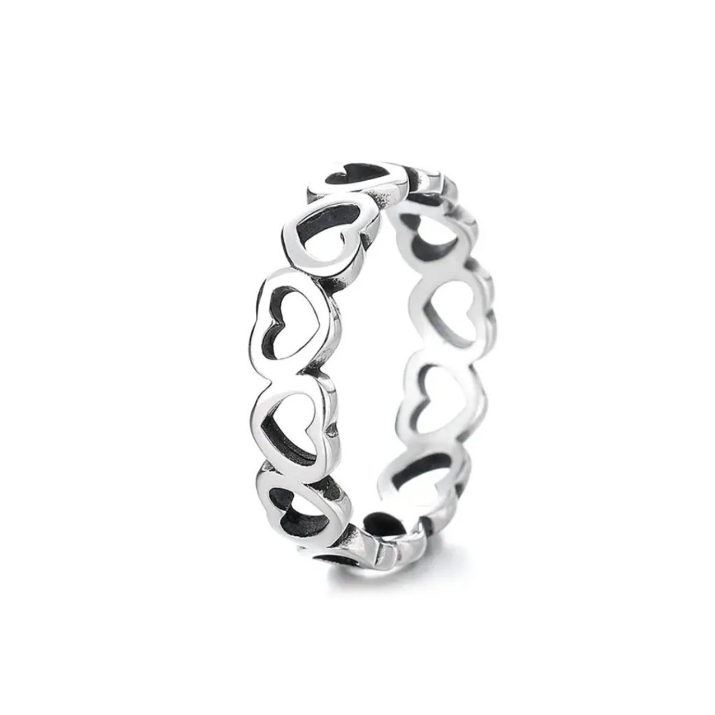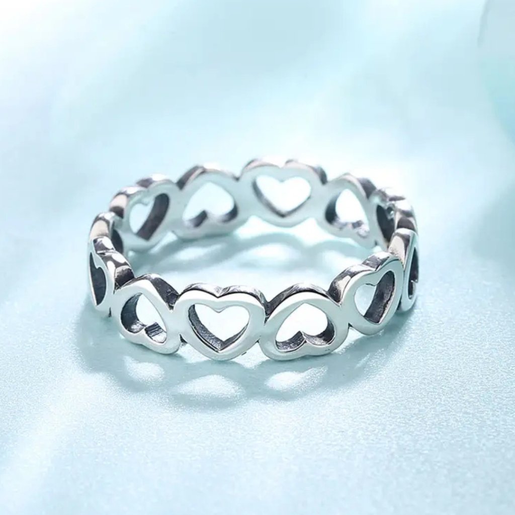 Srebrny pierścionek VENUS to ucieleśnienie czystej miłości i delikatności. Ta czarująca biżuteria szczyci się ponadczasowym designem z motywem serduszek, które są symbolem wiecznej miłości i oddania. Każde serduszko o wymiarach 5 × 4 mm jest precyzyjnie wykonane i wspólnie tworzy harmonijną całość na obwodzie całego pierścionka.