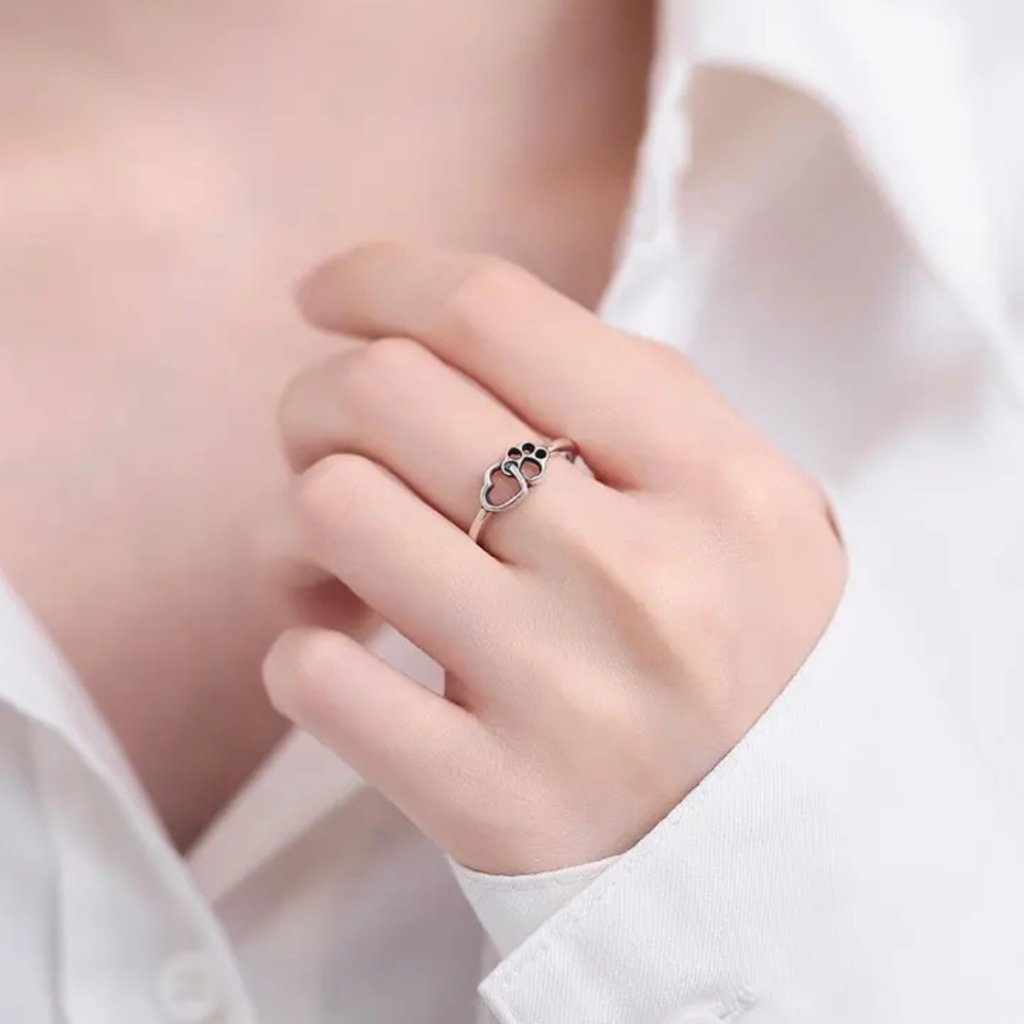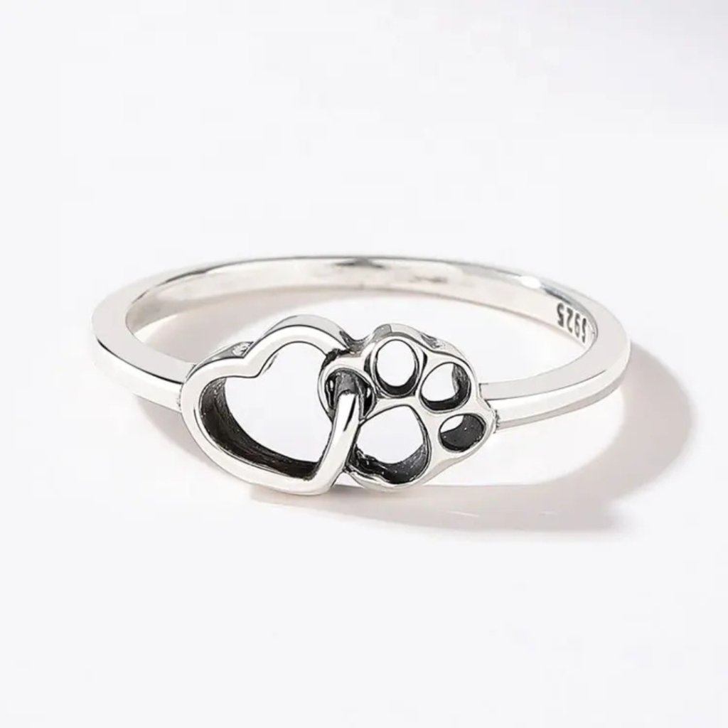 Z przodu pierścionka w zabawny sposób przeplata się serduszko o wymiarach 6 × 6 mm z łapką o wielkości 5 × 6 mm, tworząc idealną równowagę między delikatnością a oryginalnością. Dzięki swojemu subtelnemu wykonaniu idealnie nadaje się zarówno dla kobiet, jak i dziewcząt, które chcą wyrazić swoją miłość do zwierząt.