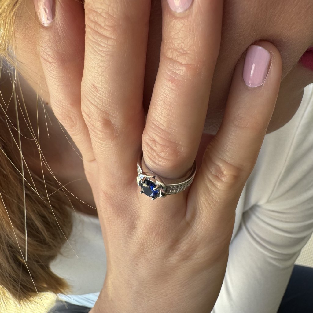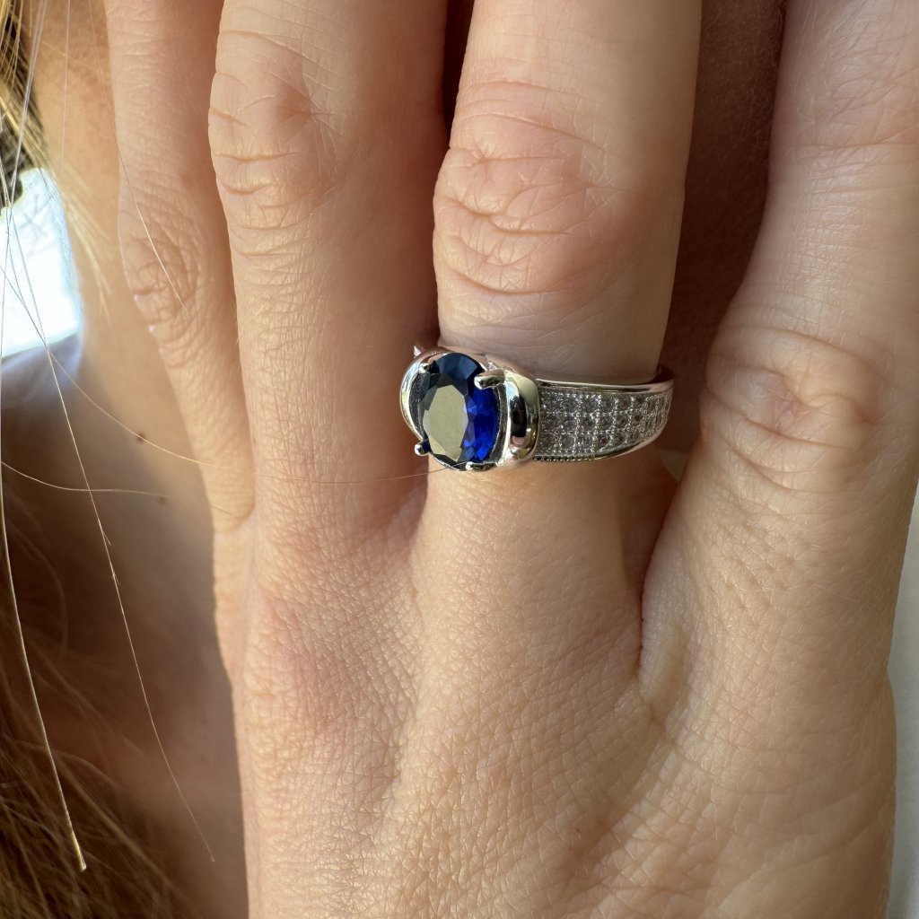 10050 Srebrny pierścionek BEATRICE z szafirowym kamieniem i cyrkoniami Ag925/1000; ≤3,50 g