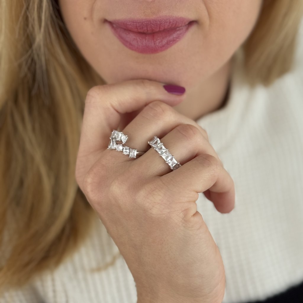 Przyjrzyj się bliżej, a zobaczysz, jak każda cyrkonia odbija światło - jak małe gwiazdy, które kryją w sobie tysiące historii. Pierścionek wykonany jest ze srebra próby 925, które znane jest z wysokiej jakości i trwałości.