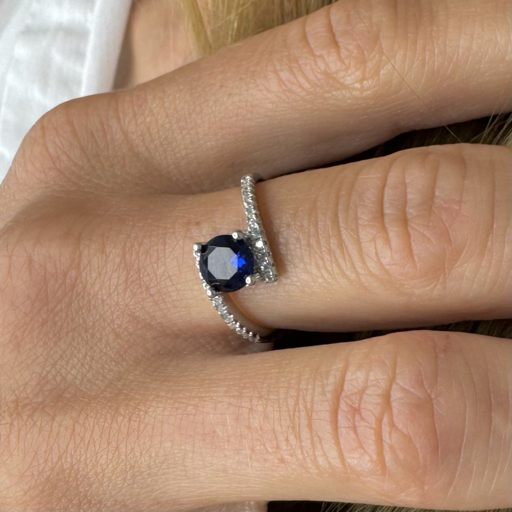 Ciemnoniebieski kamień przypomina tajemnicze głębiny oceanu, podczas gdy cyrkonie przypominają gwiazdy na nocnym niebie. Cały pierścionek jest wykończony powłoką rodowaną, która nadaje mu luksusowy wygląd i chroni go przed uszkodzeniami.