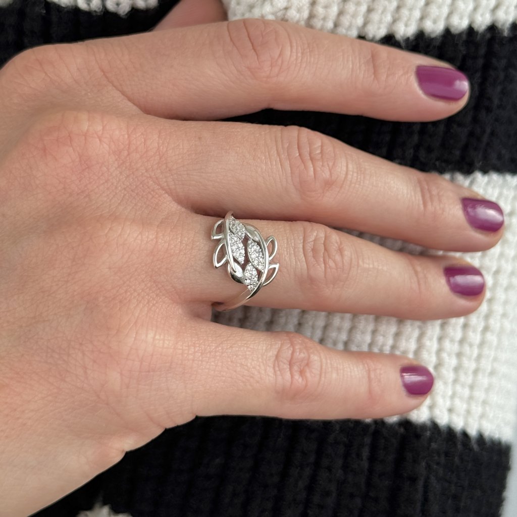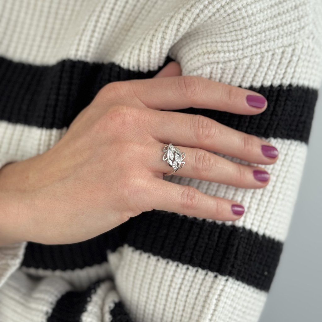Ten elegancki srebrny pierścionek próby 925 z motywem liścia jest doskonale wyważony, a jednocześnie emanuje delikatnością i pięknem. Powłoka rodowa zapewnia dłuższą żywotność i odporność na zarysowania.