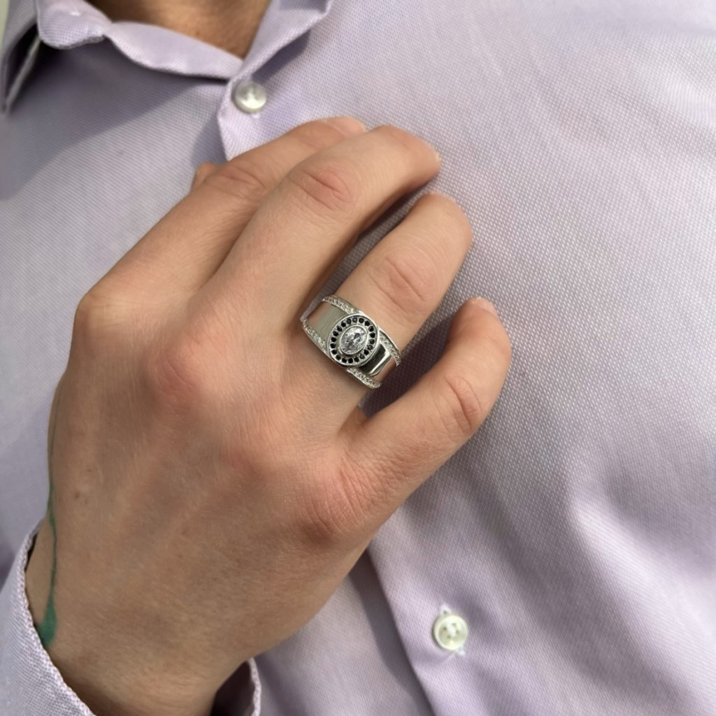 Ten srebrny pierścionek z przezroczystym kamieniem o wymiarach 7 × 5 mm i czarną cyrkonią sześcienną to nie tylko biżuteria - to symbol ambicji i odwagi, które są w sercu każdego mężczyzny. To opowieść o podążaniu za swoimi marzeniami i o tym, jak czasami musimy wyruszyć w nieznane, aby znaleźć to, czego naprawdę szukamy. Nie sprzedajemy tylko biżuterii, sprzedajemy historie i emocje.
