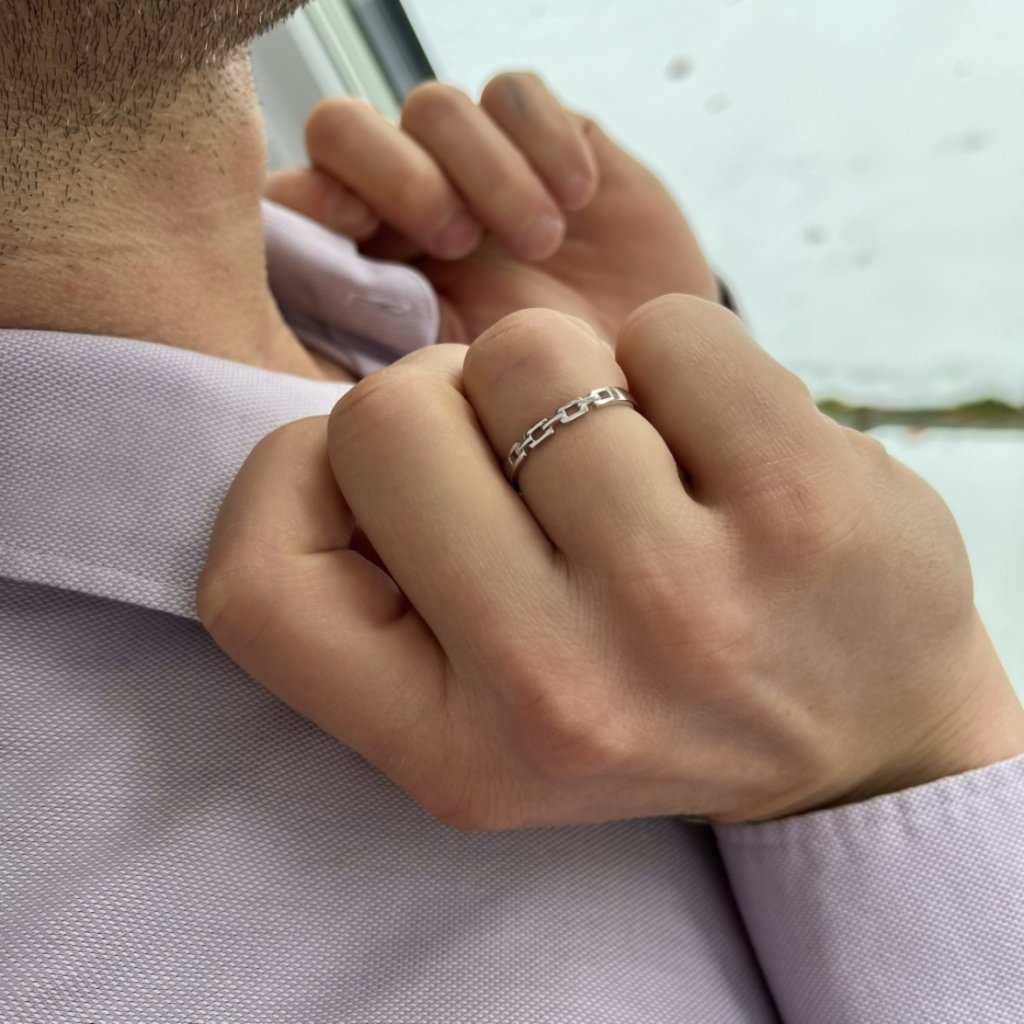 Rozmiar pierścionka można regulować w zakresie od 8 do 10 (UE: 57-64), dzięki czemu można go dopasować do dłoni, aby uzyskać idealny komfort. Kolor pierścionka to klasyczne srebro, które łatwo połączyć z dowolnym strojem lub inną biżuterią.