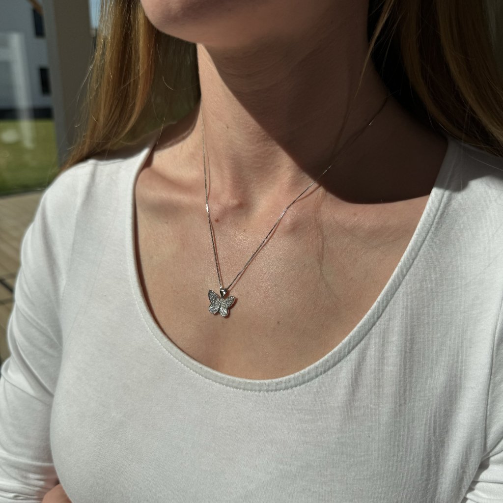 Nasza srebrna biżuteria z motylem i cyrkoniami jest wyjątkowa, delikatna i piękna - idealna dla każdej kobiety, która chce podarować sobie coś naprawdę wyjątkowego.