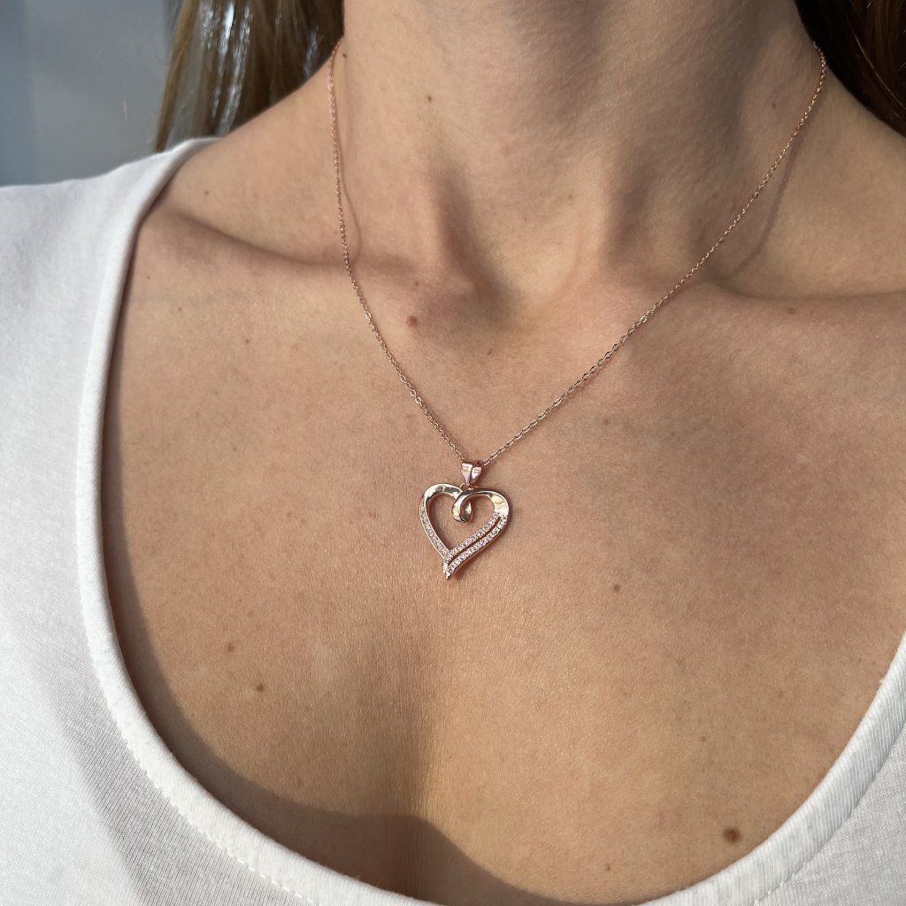Srebrny łańcuszek z zawieszką w kształcie serca z różowymi cyrkoniami to biżuteria, która podkreśla wyjątkowość i piękno każdej kobiety. To idealny wybór dla tych, którzy chcą podkreślić swój urok i kobiecość. Podaruj sobie lub bliskiej osobie tę piękną biżuterię, która jest czymś więcej niż tylko dodatkiem.