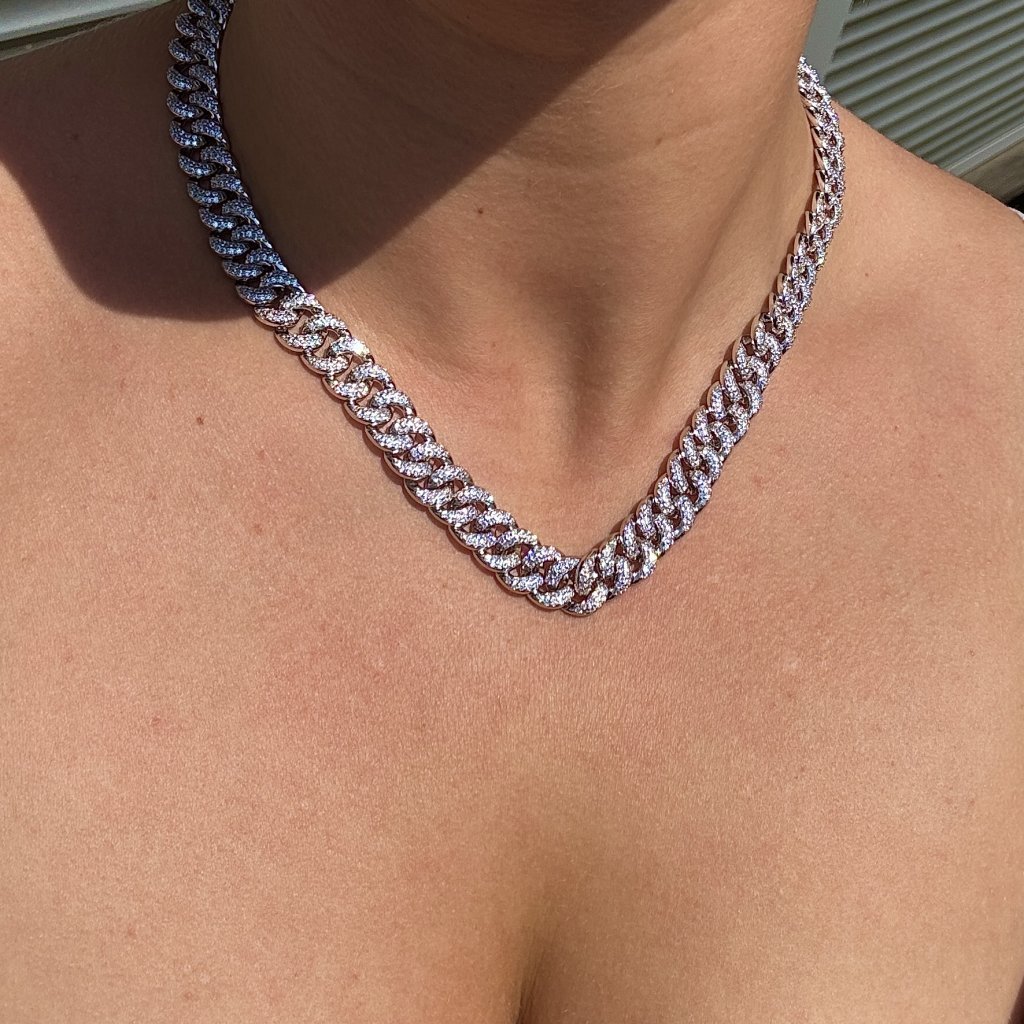 Naszyjnik ANGELEA to prawdziwy klejnot wśród klejnotów. Ten olśniewający element rozciąga się na całej długości 51 cm i ma imponującą szerokość 10 mm, dzięki czemu jest naprawdę nie do pominięcia. Na całej długości wysadzany jest błyszczącymi cyrkoniami, które nadają mu niezwykłego blasku i elegancji.