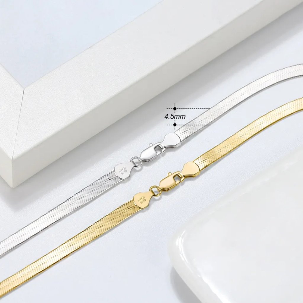 Pozłacany srebrny łańcuszek ALVARO to uosobienie ponadczasowej elegancji i luksusu. Wykonany z wysokiej jakości srebra próby 925/1000 z pozłacanym wykończeniem, ten 50-centymetrowy łańcuszek zachwyca klasycznym wzorem w jodełkę. Dzięki szerokości 4,5 mm jest wystarczająco wyrazisty, aby przyciągać uwagę, ale nadal nadaje się do codziennego noszenia.