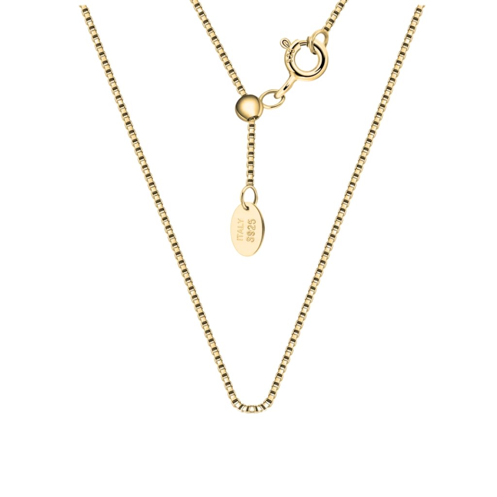 Przedstawiamy Państwu luksusowy, pozłacany łańcuszek GARRET, który wyróżnia się minimalistycznym designem i precyzyjnym wykonaniem. Ta biżuteria o długości 45 cm wykonana jest z wysokiej jakości srebra Ag925/1000 i pokryta ekskluzywnym 18-karatowym złotem, które nadaje jej wspaniały, złoty połysk. Dzięki klasycznemu stylowi Box i delikatnej szerokości 0,6 mm jest to idealny wybór do noszenia na co dzień.