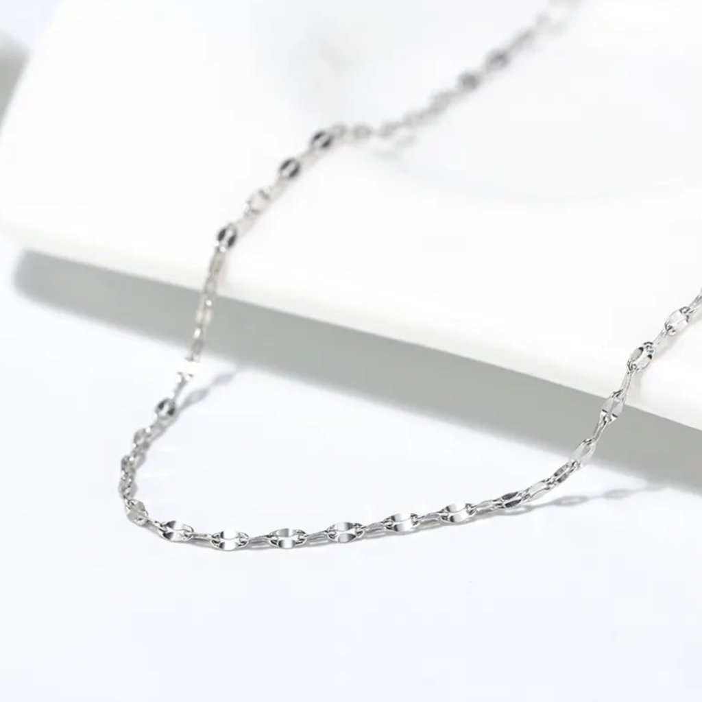 Jego szerokość 2,3 mm jest idealna do noszenia na co dzień i doskonale prezentuje się samodzielnie, jak i z wisiorkiem. Specjalne połączenie wzorów Tile i Twisted Flake chain tworzy unikalną teksturę, która nadaje łańcuszkowi wyjątkowy charakter i luksusowy wygląd.