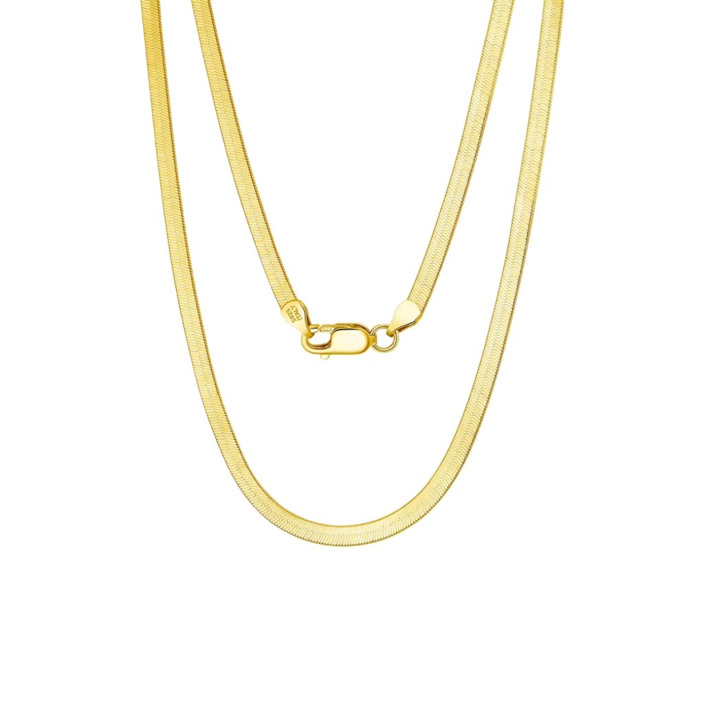 Biżuteria wykonana jest z wysokiej jakości srebra próby 925/1000 i pokryta 18-karatowym złotem, co zapewnia luksusowy wygląd i długą żywotność. Jego płaska konstrukcja typu Herringbone w połączeniu ze złotym kolorem tworzy ponadczasową elegancję.