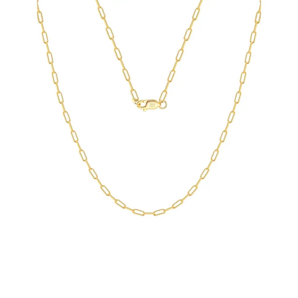 Pozłacany łańcuszek JONAS to idealne połączenie minimalizmu i elegancji. Jego ogniwa w stylu Paperclip o szerokości 1,8 mm tworzą nowoczesny i czysty design. Długość 40 cm jest idealna do noszenia na co dzień i doskonale uzupełni każdą stylizację.