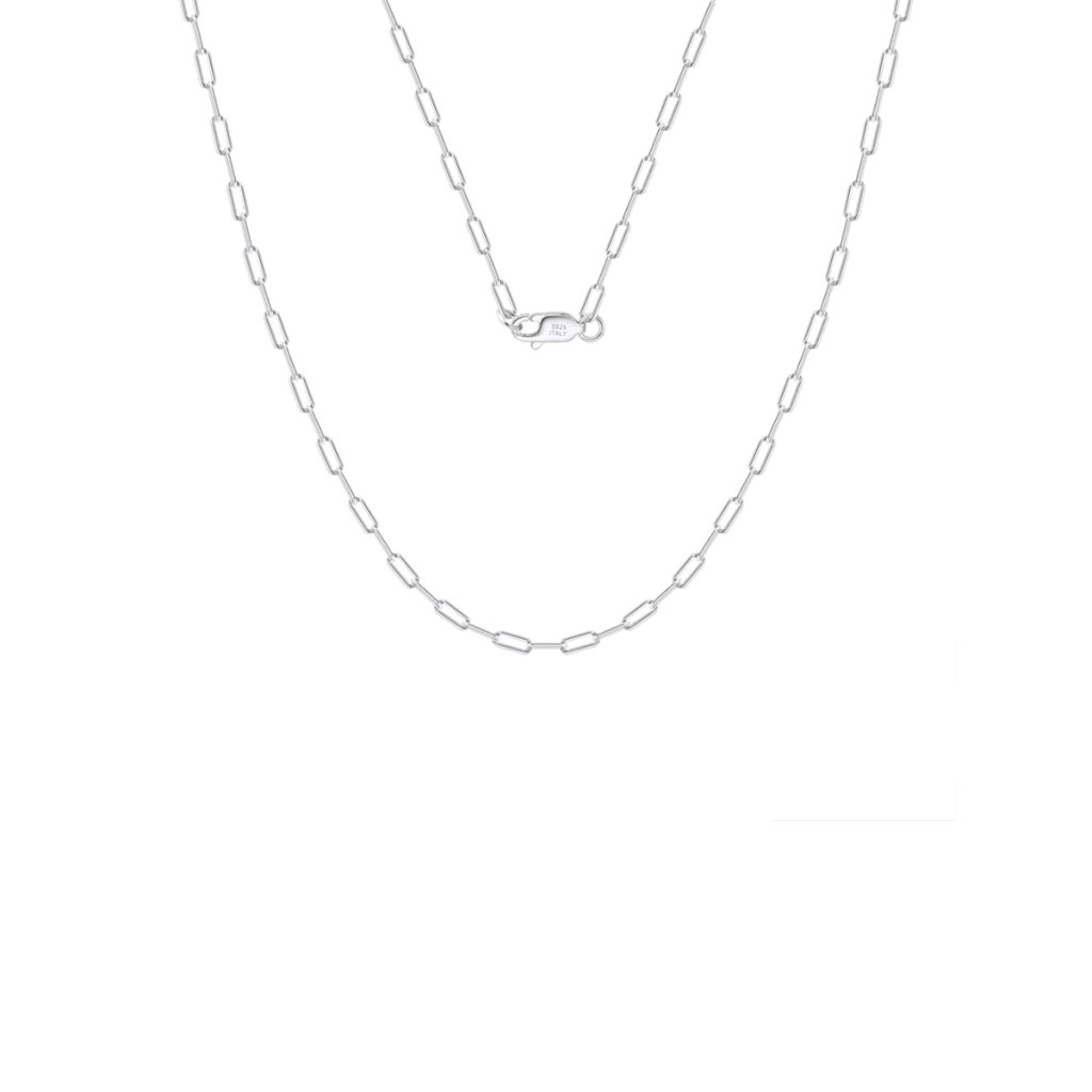 Srebrny łańcuszek JONAS to doskonałe połączenie minimalizmu i elegancji. Jego ogniwa w stylu Paperclip o szerokości 1,8 mm tworzą nowoczesny i czysty design. Długość 45 cm jest uniwersalna i idealnie dopełni każdą stylizację.