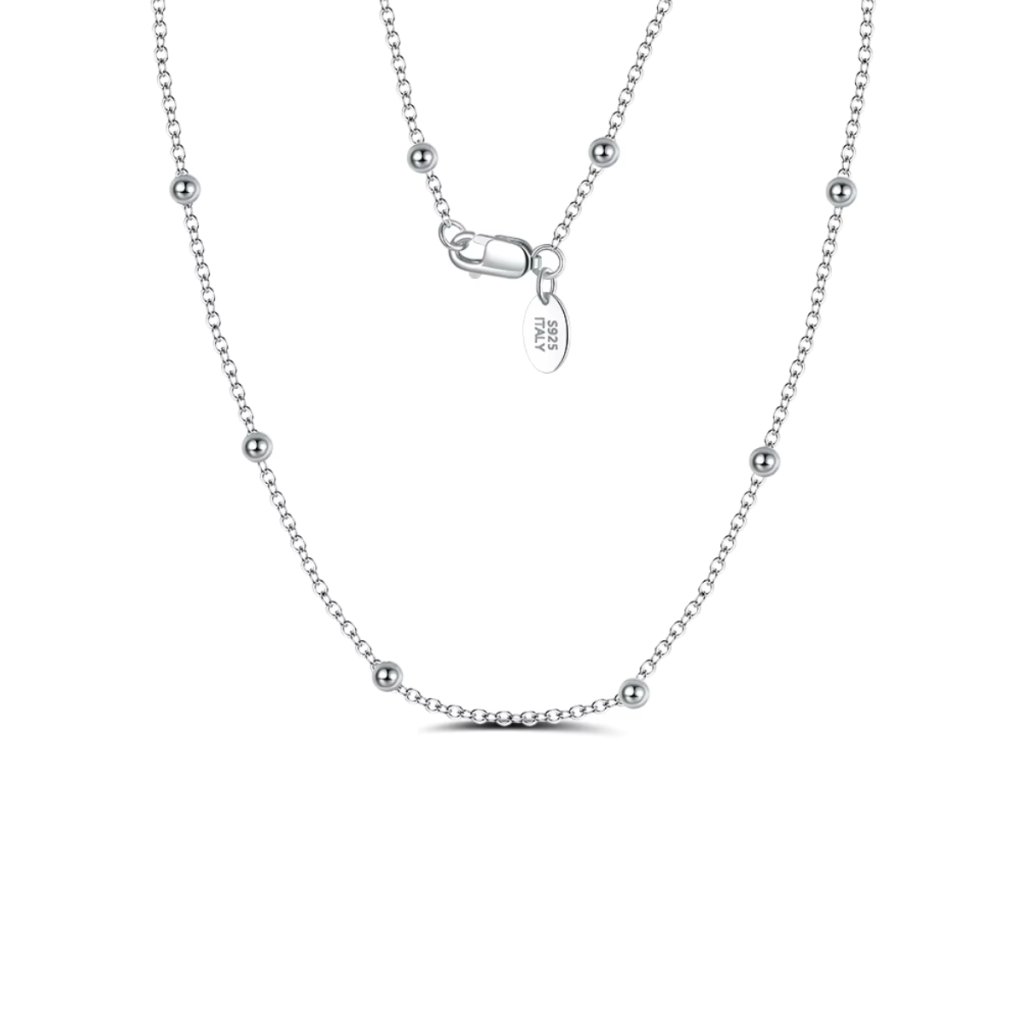 Srebrny łańcuszek JAYDEN to doskonała harmonia delikatności i elegancji. Jego ogniwa w stylu Beads o szerokości 1 mm tworzą olśniewający, połyskujący efekt. Długość 55 cm daje możliwość noszenia łańcuszka swobodnie opadającego, co idealnie nadaje się do stworzenia zwiewnego i eleganckiego wyglądu.