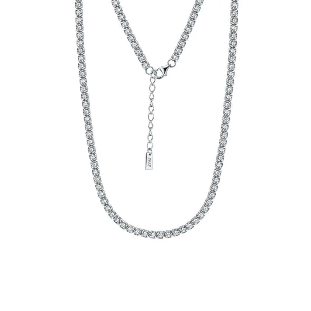 Naszyjnik wykonany jest z wysokiej jakości srebra próby 925/1000 i pokryty rodem, co zapewnia długotrwały blask i ochronę przed utlenianiem. Szerokość 2 mm doskonale równoważy wyrazistość cyrkonii z eleganckim designem.