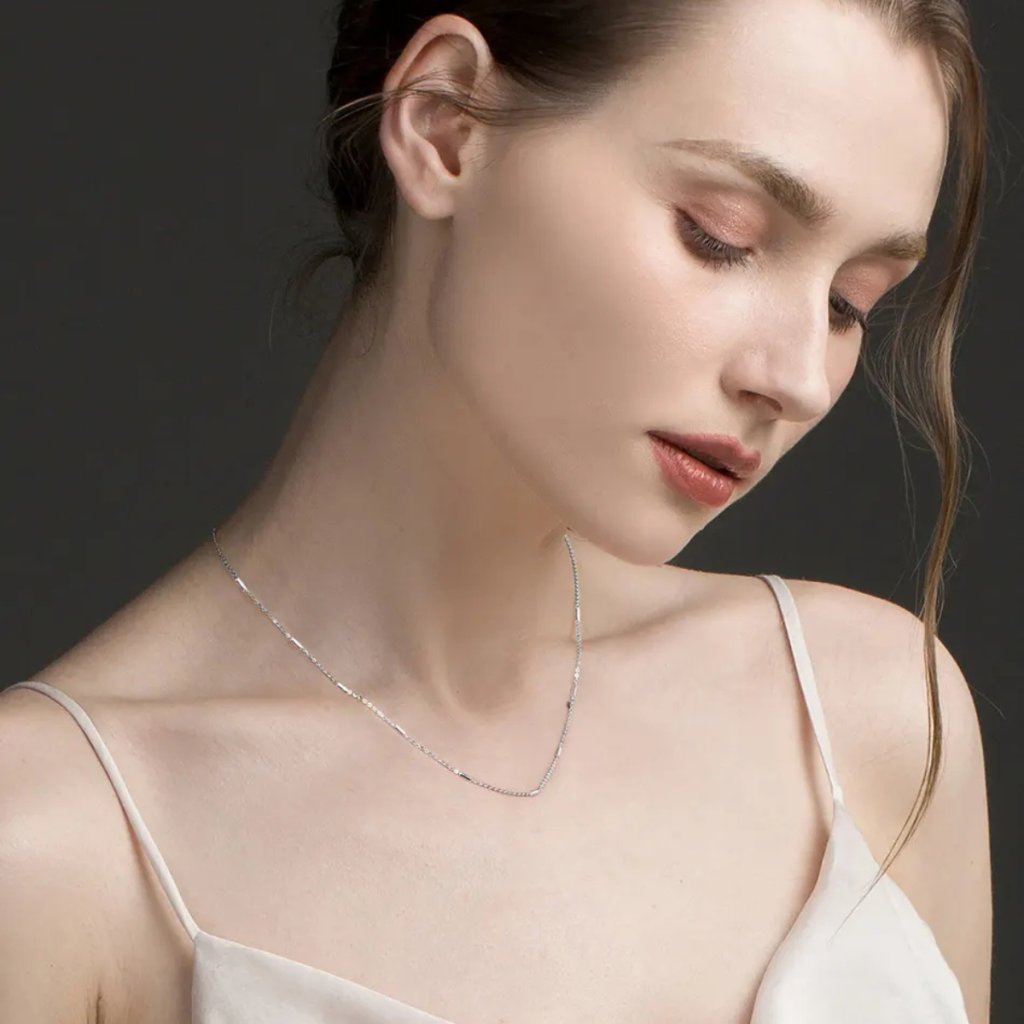 Łańcuszek wykonany jest z wysokiej jakości srebra próby 925/1000 i pokryty rodem, który chroni przed utlenianiem i zapewnia długotrwały połysk. Dzięki subtelnej stylistyce nadaje się do noszenia samodzielnie, jak i jako baza dla Twojej ulubionej zawieszki.