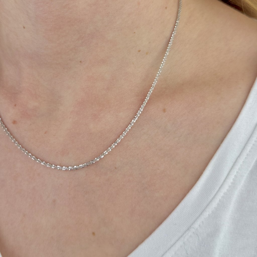 Srebrny łańcuszek MIRAN to doskonała harmonia elegancji i nowoczesnego stylu. Jego precyzyjnie wykonane ogniwa o szerokości 1,8 mm tworzą efektowną grę światła. Długość 45 cm jest idealna do noszenia na co dzień i doskonale pasuje do każdego dekoltu.
